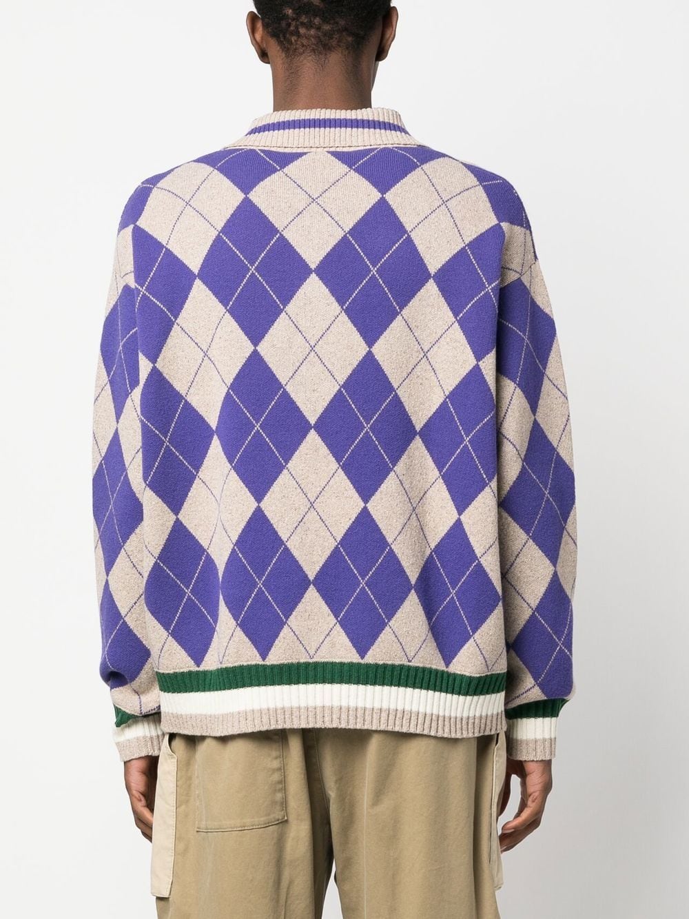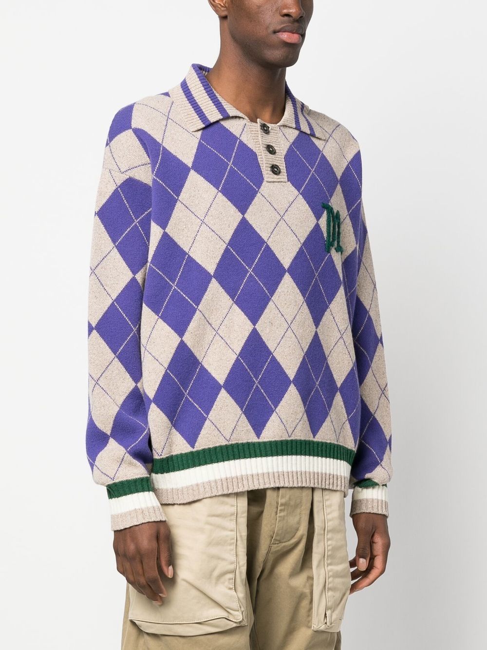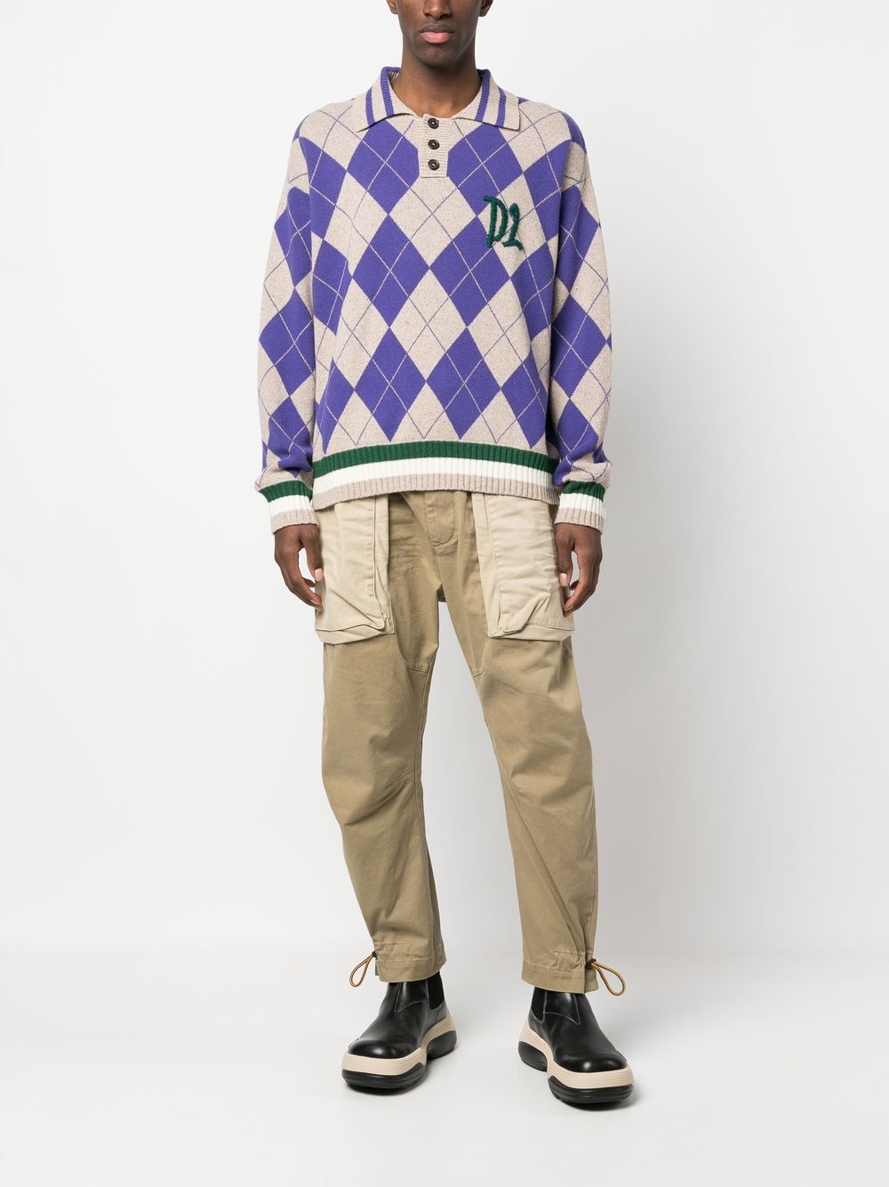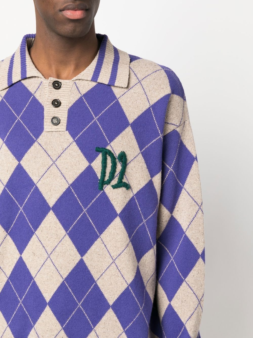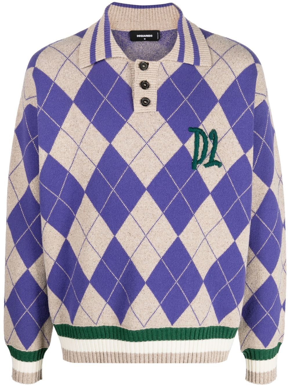 Spun from soft wool with a touch of silk, this knitted polo shirt from Dsquared2 is cut for a relaxed silhouette and decorated with an embroidered logo at the chest over an argyle check pattern throughout.