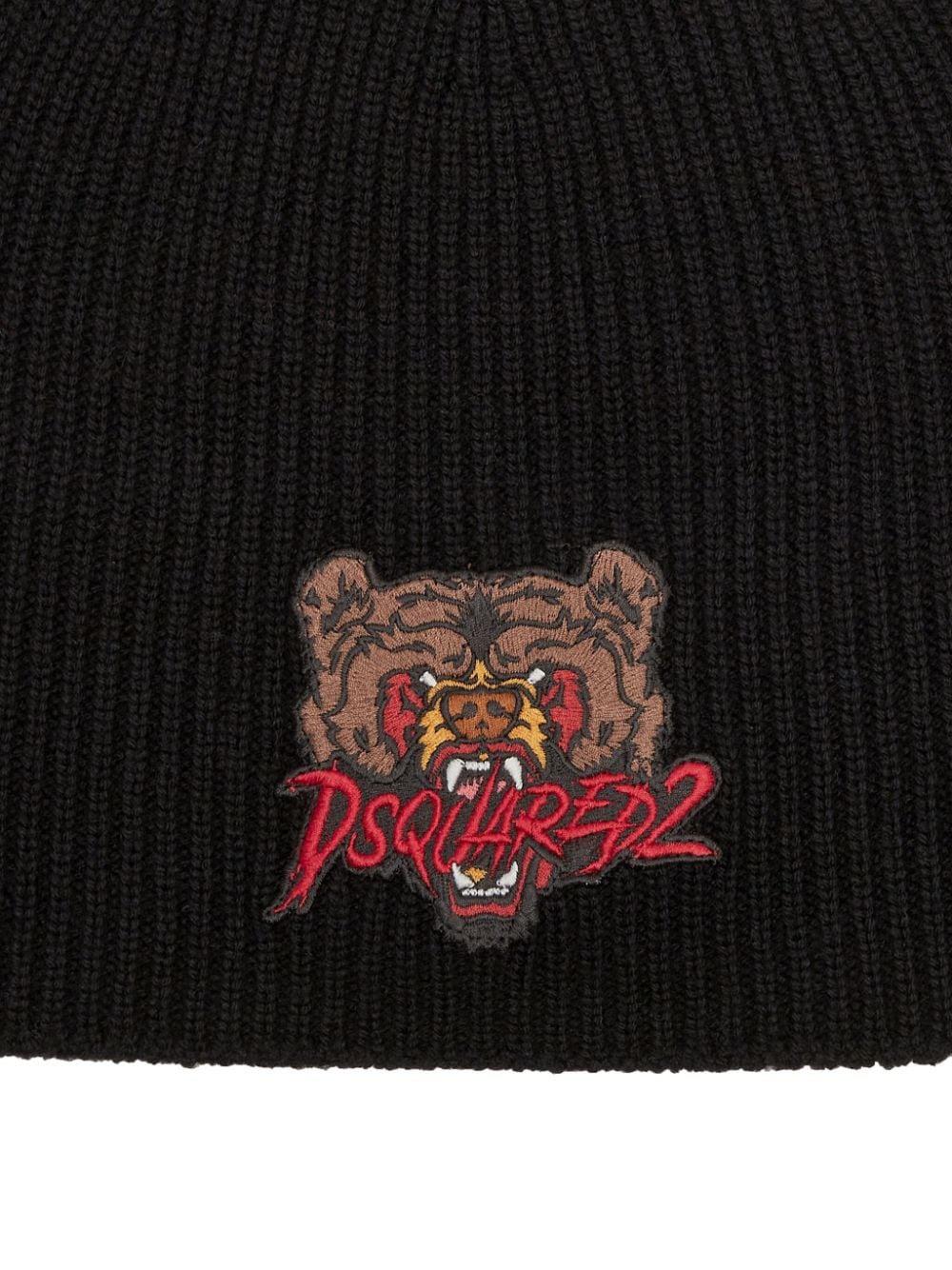 bear-appliqué wool beanie