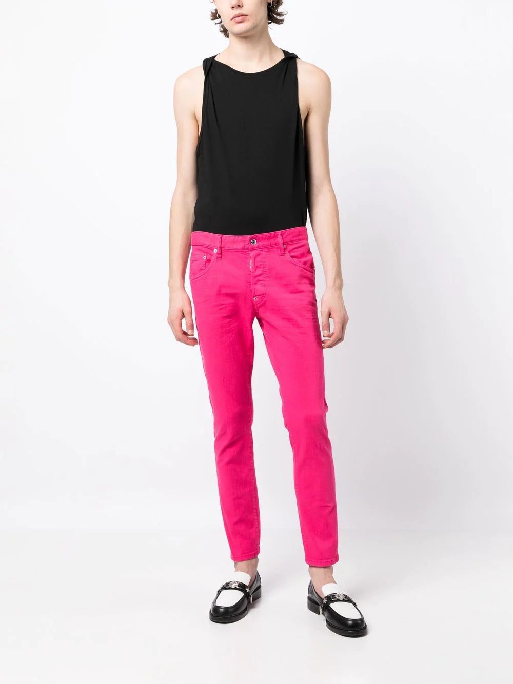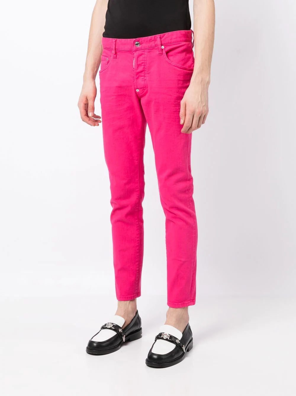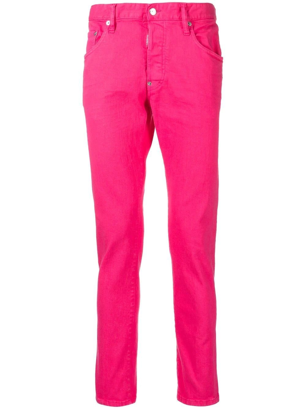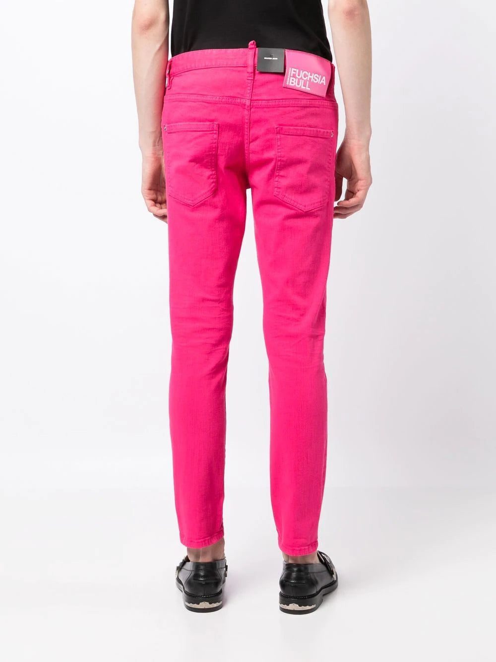 Dsquared2 presents these Bull slim-fit jeans in a vibrant pink colourway, featuring the signature logo patch attached to the front for a branded finish.