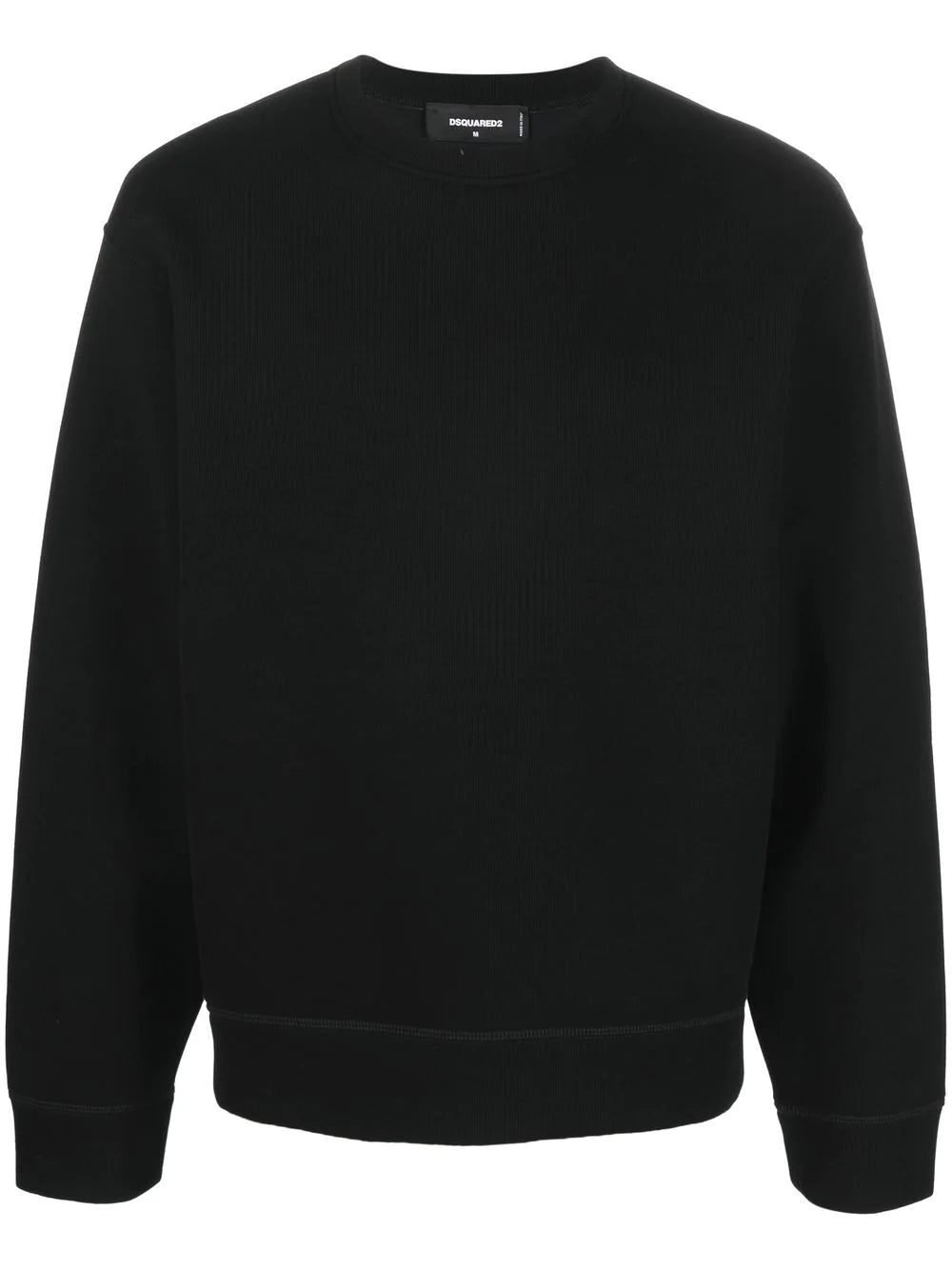 drop-shoulder fitted sweatshirt from DSQUARED2 featuring black, jersey fleece, crew neck, drop shoulder, long sleeves, fitted-cuff sleeves and straight hem.