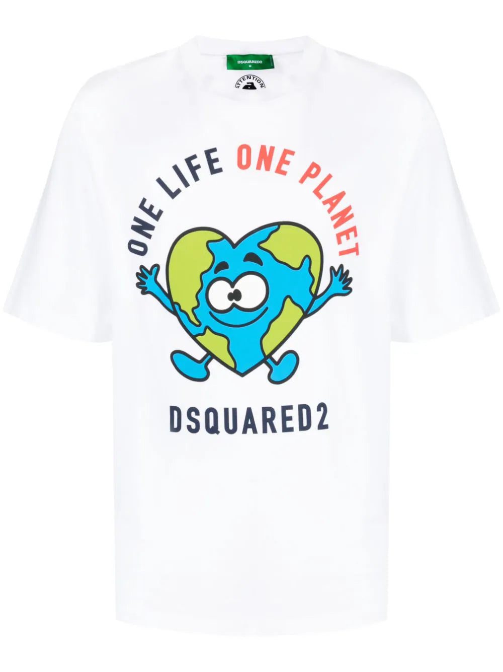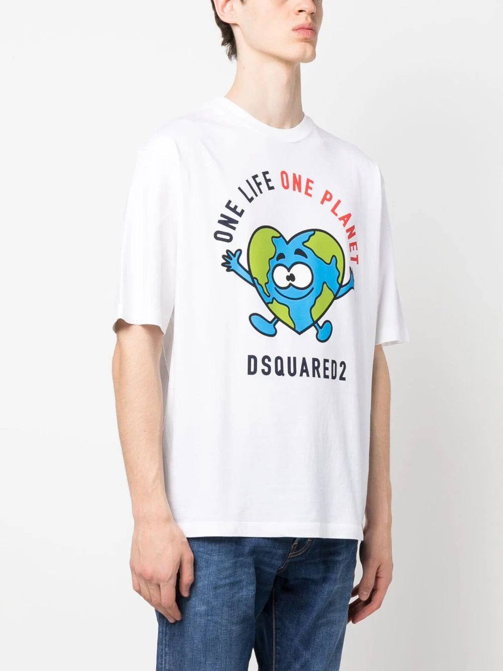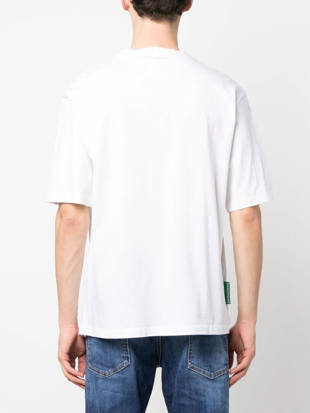 graphic slogan-print T-shirt from DSQUARED2 featuring white, cotton, graphic print to the front, crew neck, short sleeves and straight hem.