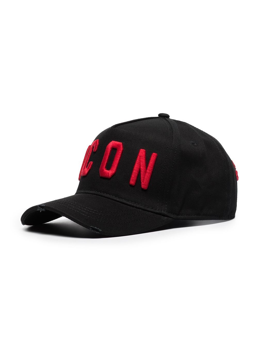 Claim your status with this 'ICON' baseball cap from DSQUARED2, designed in the spirit of classic American styling. The striking accessory has been fashioned from black cotton, boasting a worn effect to emulate a vintage aesthetic. The comfortable piece features a curved peak and an adjustable fit. The front is embroidered with the term 'ICON' in red, while the back dons a DSQUARED2 logo.