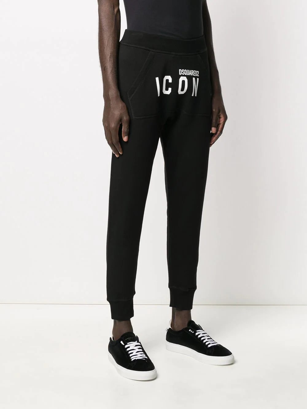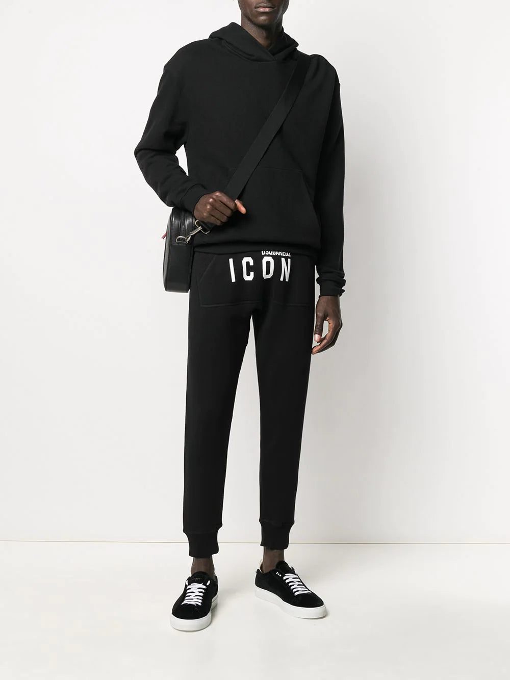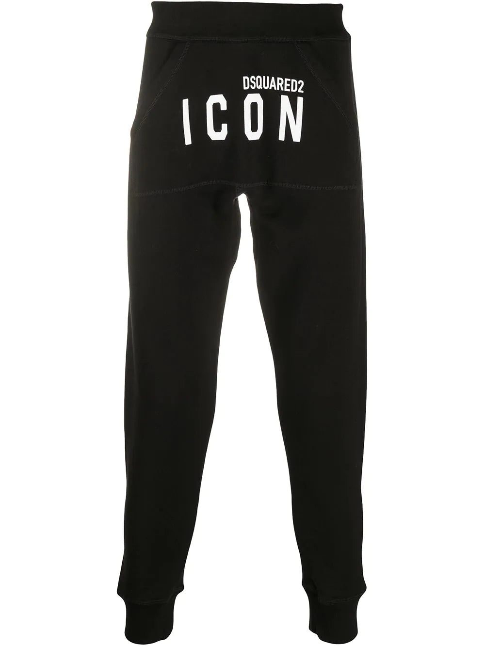 A day off and casual clothes - name a better duo. Crafted from cotton, these black track pants from DSQUARED2 are detailed with a white printed Icon logo to the front for an extra cool touch. The perfect go-to for a relaxed look that doesn't compromise on style. Featuring an elasticated waistband, a kangaroo pocket, a tapered leg, elasticated cuffs and a regular length.