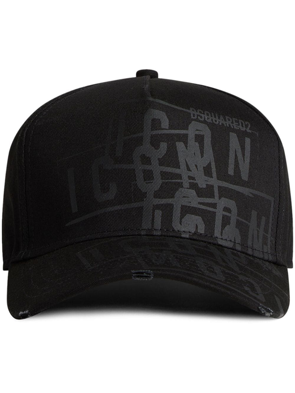 Dsquared2 is constantly re-imagining its hallmark graphics – the overlapping Icon print on this black baseball cap, for example, is designed to look as though it’s been frantically applied with an ink stamp.