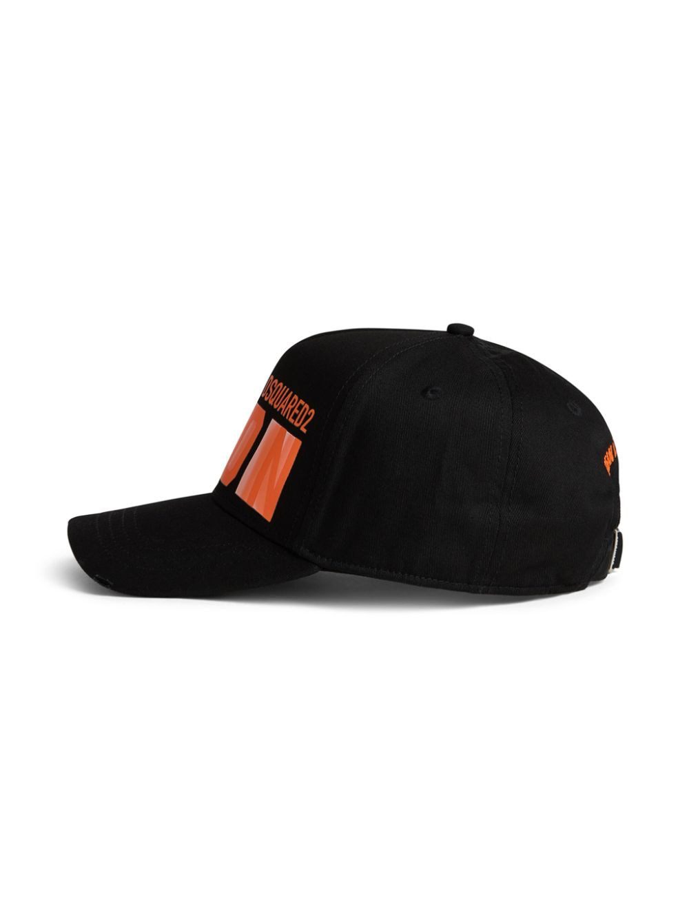This Dsquared2 baseball cap is printed with bold orange logo lettering on the front and is embroidered on the back in contrasting orange threads.