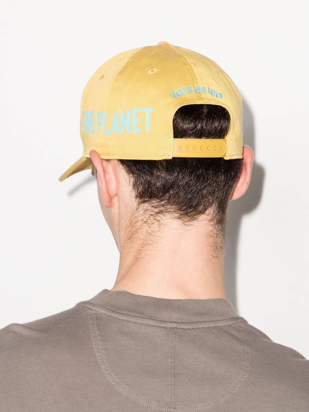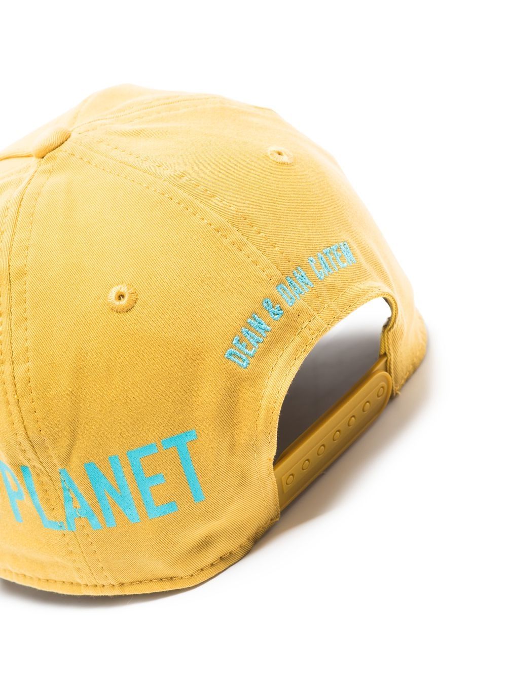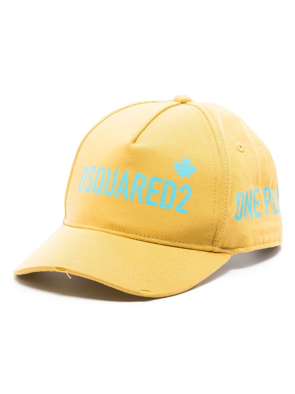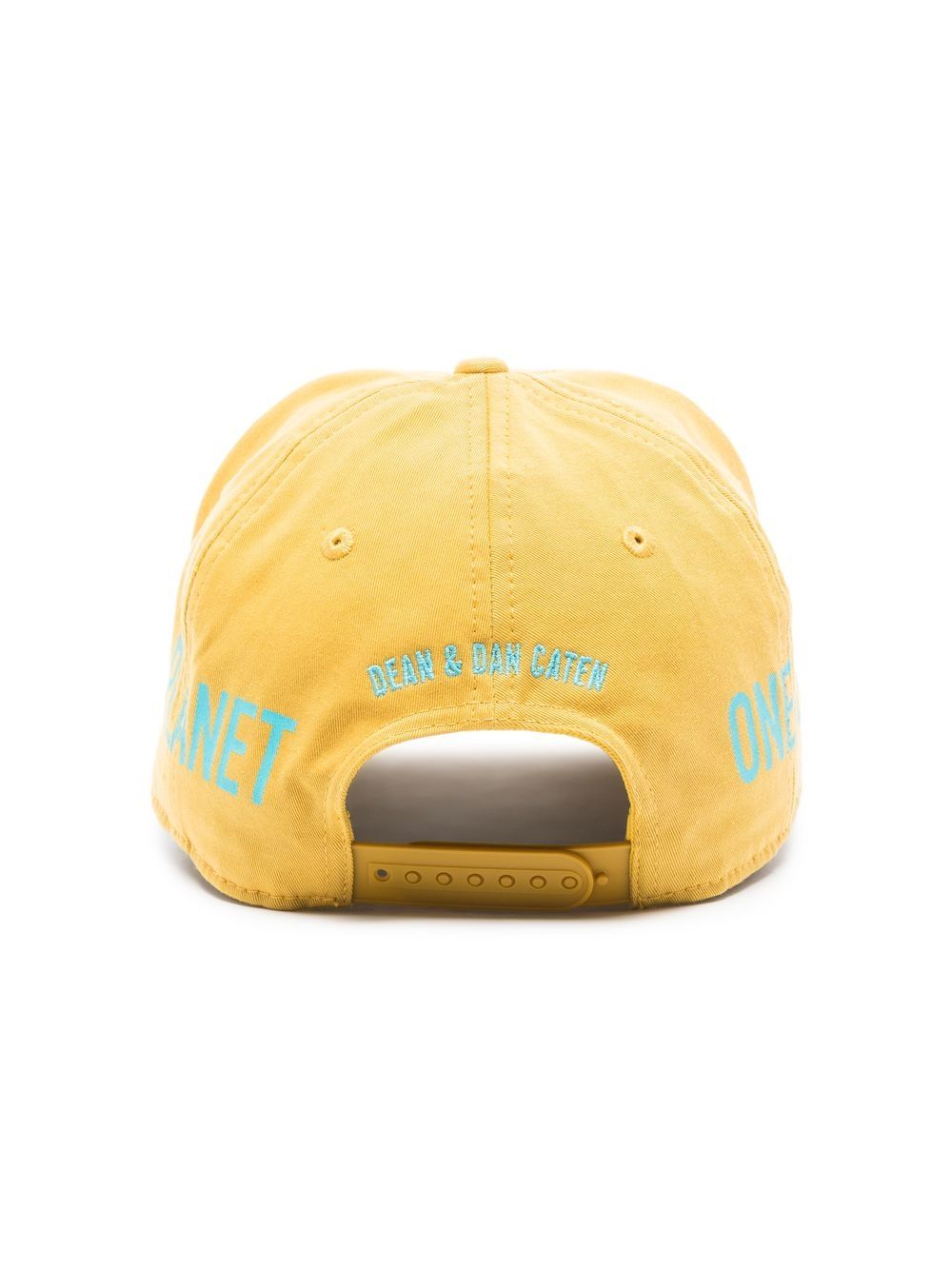 canary yellow/light blue cotton logo print to the front curved narrow brim adjustable strap to the rear