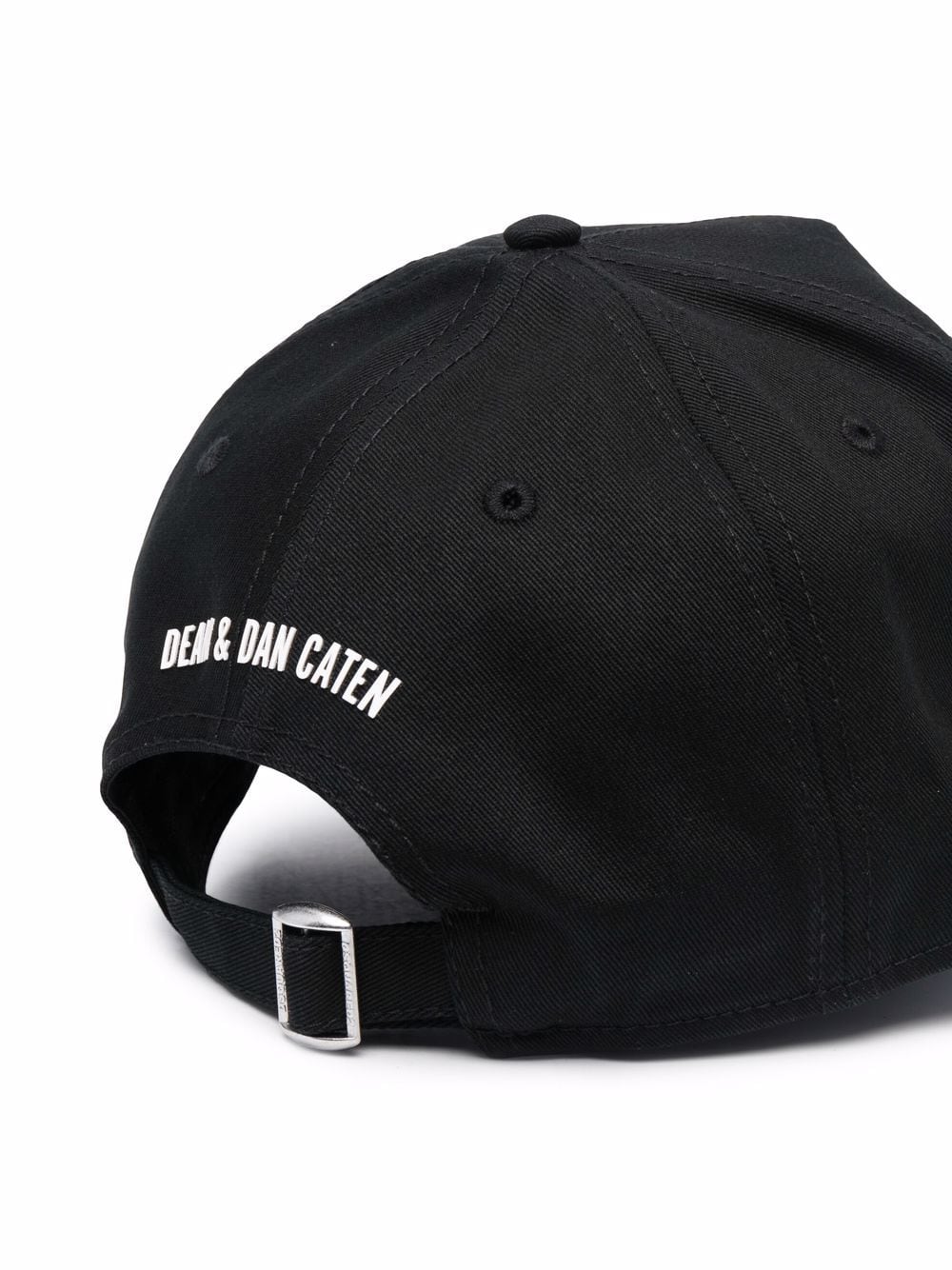 jet black/white cotton logo print to the front curved narrow brim adjustable strap to the rear
