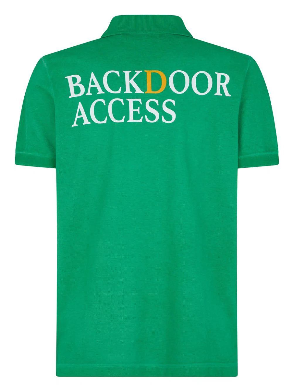 Cut from soft cotton, this polo shirt by DSQUARED2 is imagined in an eye-catching green hue. Its classic silhouette is detailed with logo lettering at the chest and a rear slogan print that reads 'BACKDOOR ACCESS.'