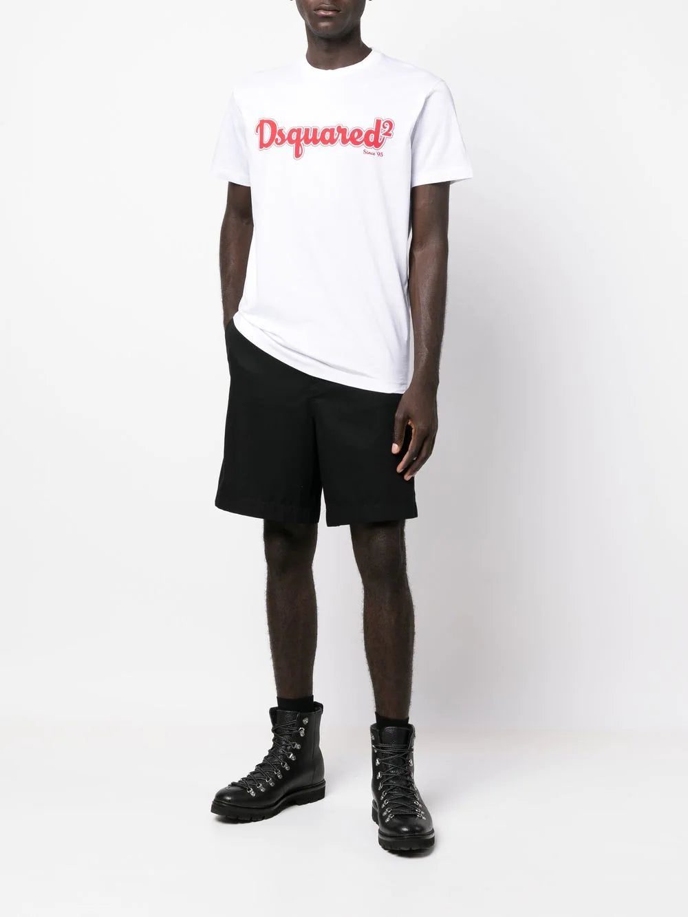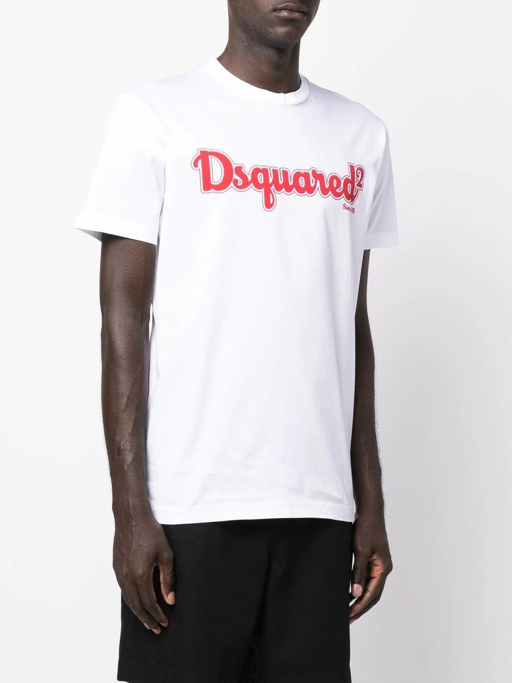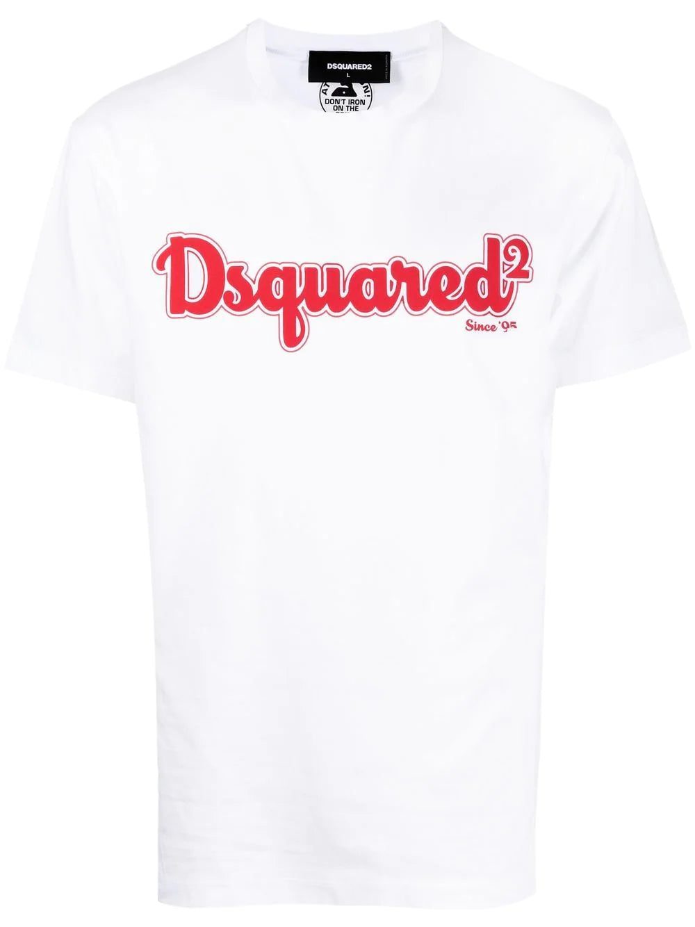 logo-print short-sleeved T-shirt from DSQUARED2 featuring cloud white, bright red, cotton, logo print to the front, crew neck, short sleeves and straight hem.
