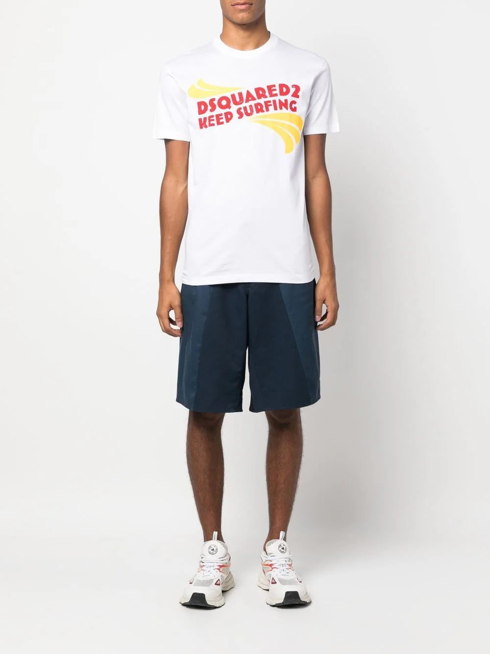 logo-print T-shirt from DSQUARED2 featuring white, yellow, red, cotton, logo print to the front, crew neck and short sleeves.