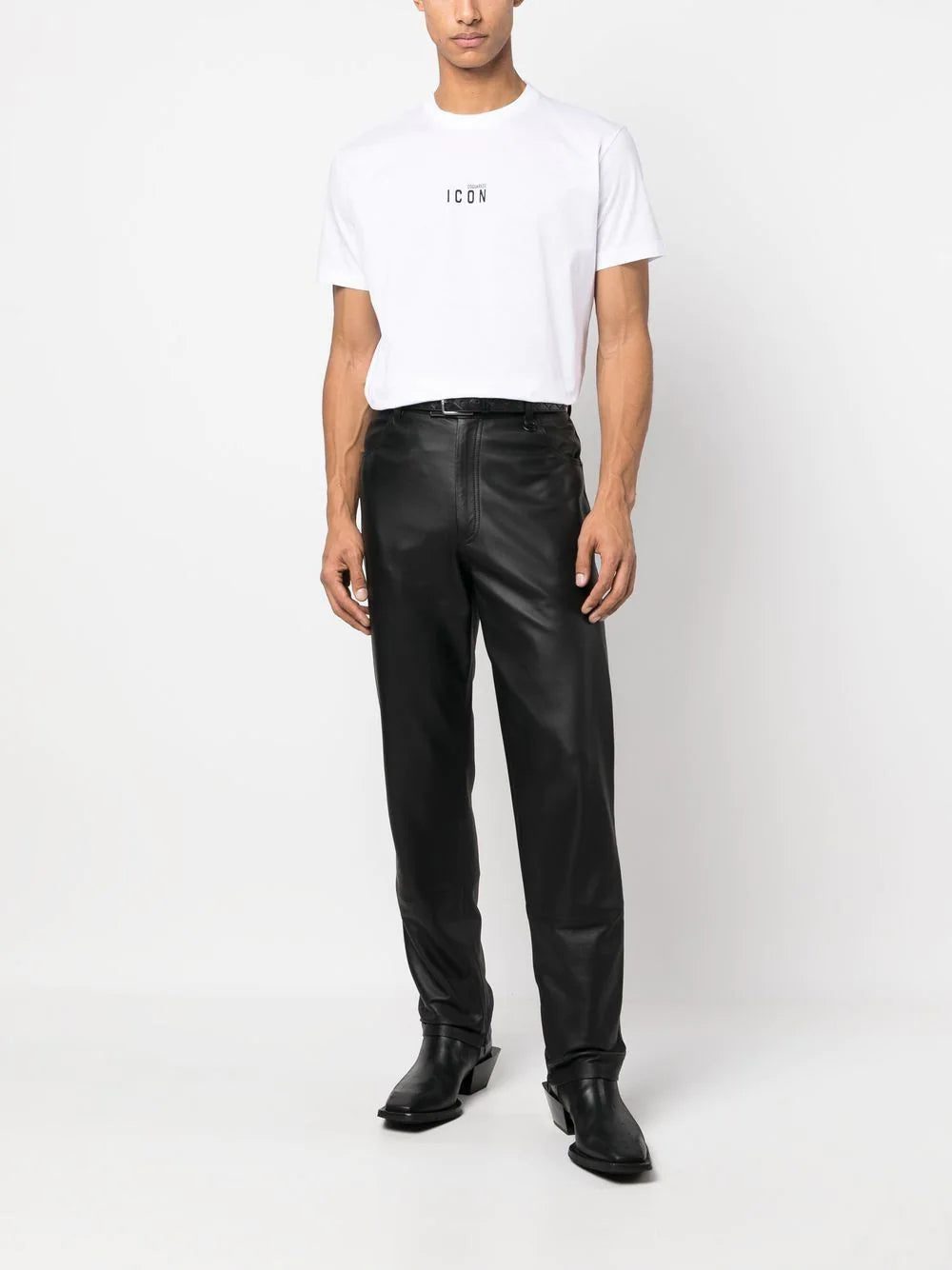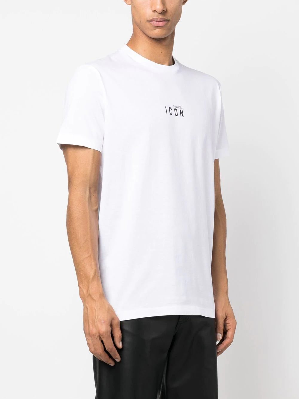 logo-print T-shirt from DSQUARED2 featuring optical white, cotton, logo print to the front, short sleeves and straight hem.