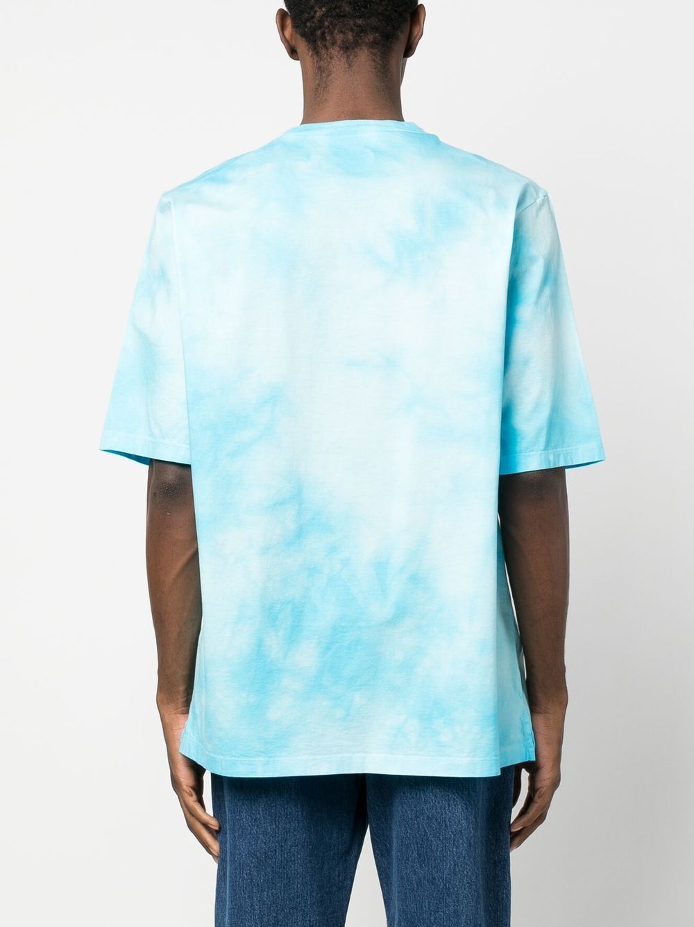 sky blue cotton tie-dye print logo print to the front crew neck short sleeves straight hem