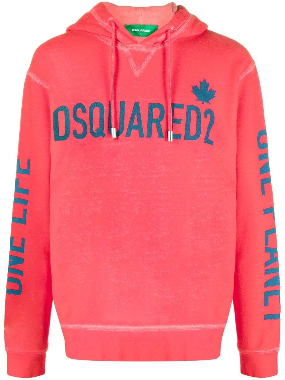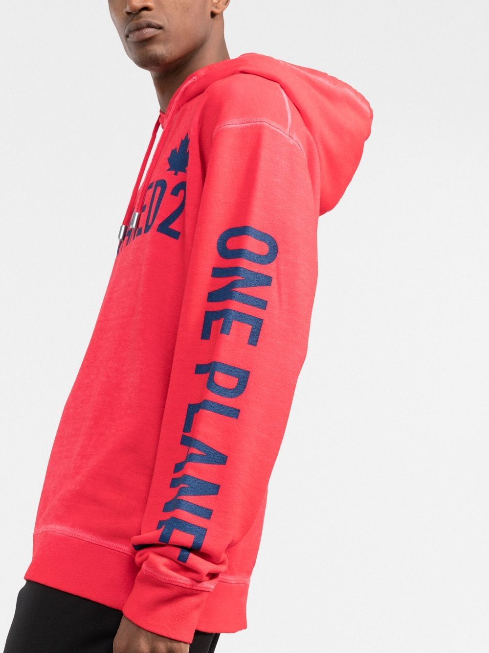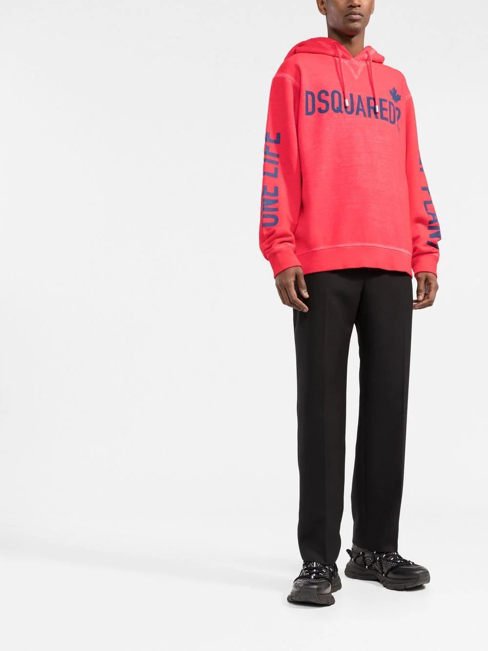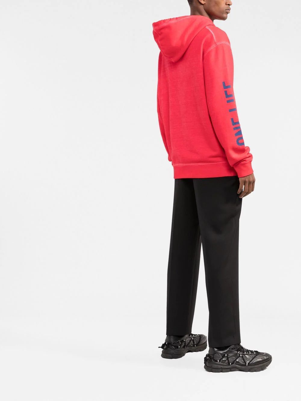 One Life hooded sweatshirt from DSQUARED2 featuring red, cotton, drawstring hood, logo print to the front and straight hem.