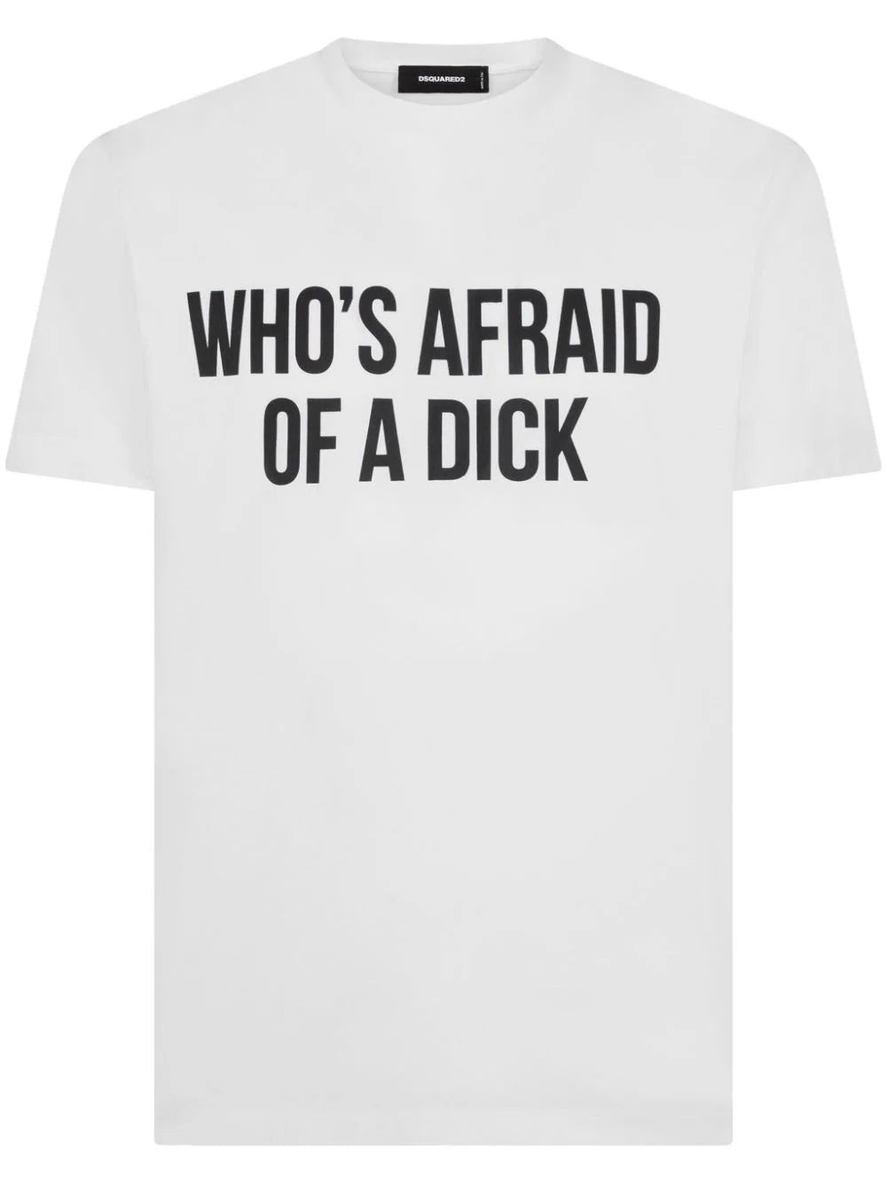The tongue-in-cheek slogan lettering at the front of this white T-shirt proves exactly why Dsquared2’s twin founders are dubbed the ‘enfants terribles’ of the fashion industry.