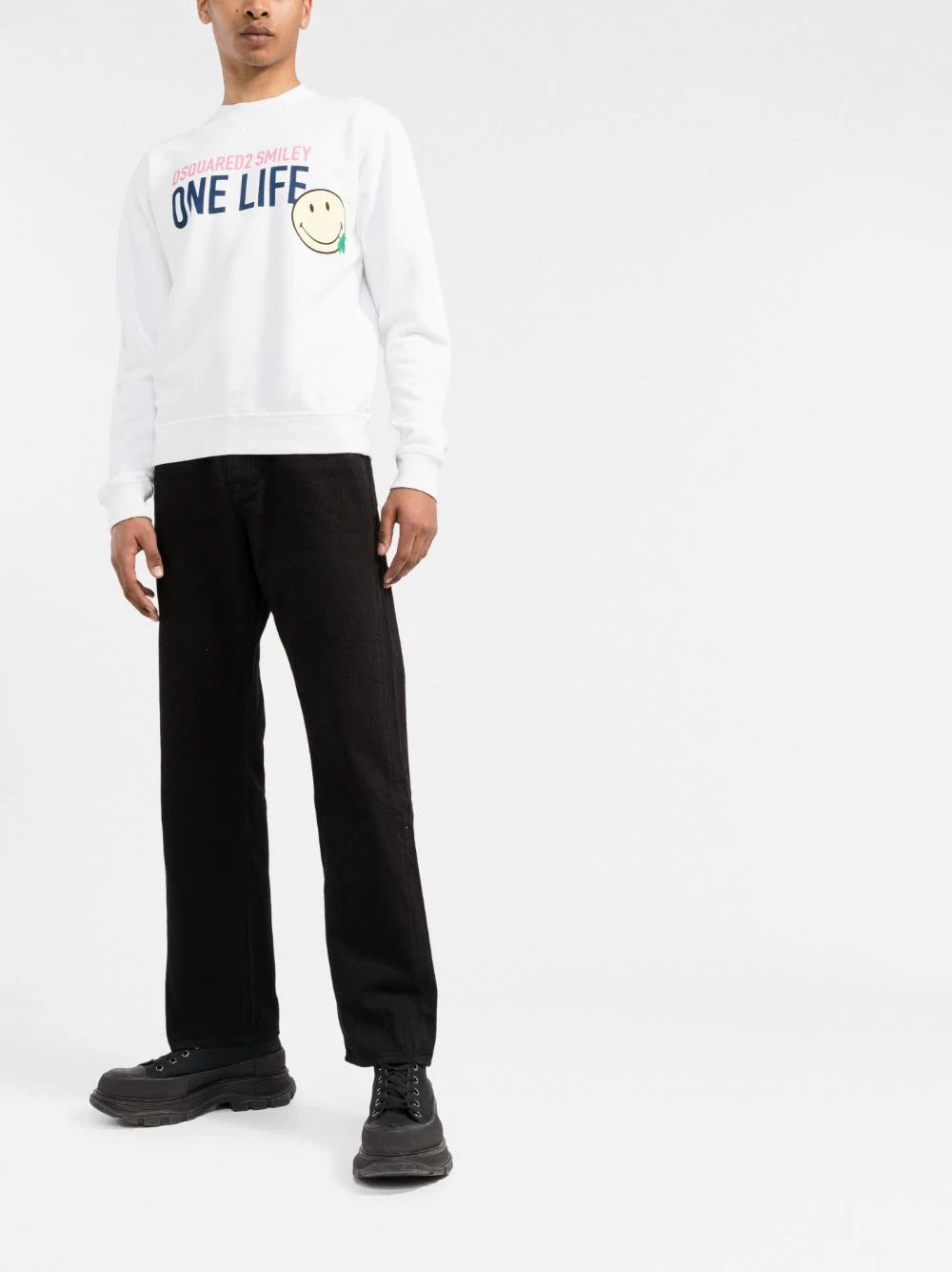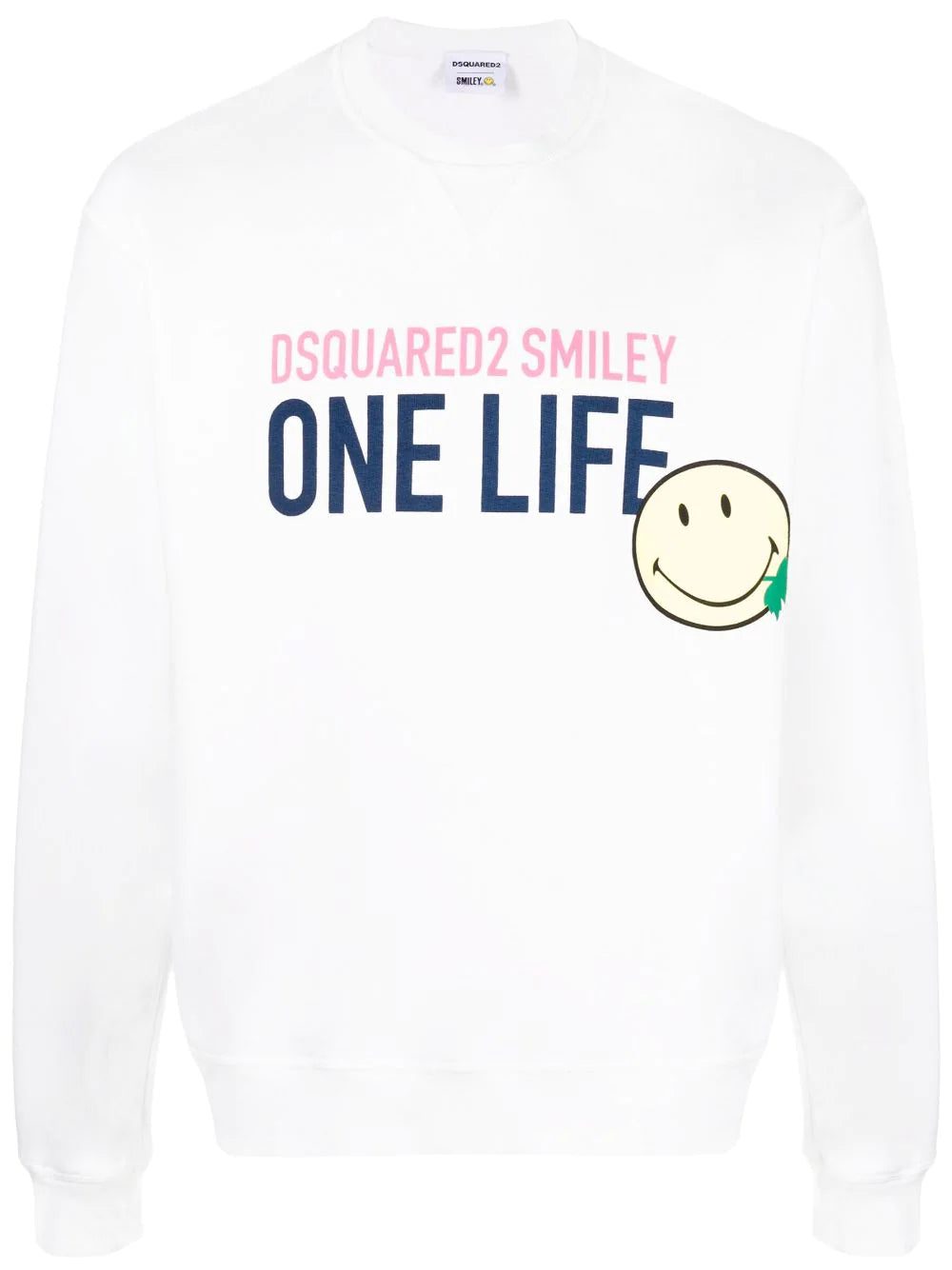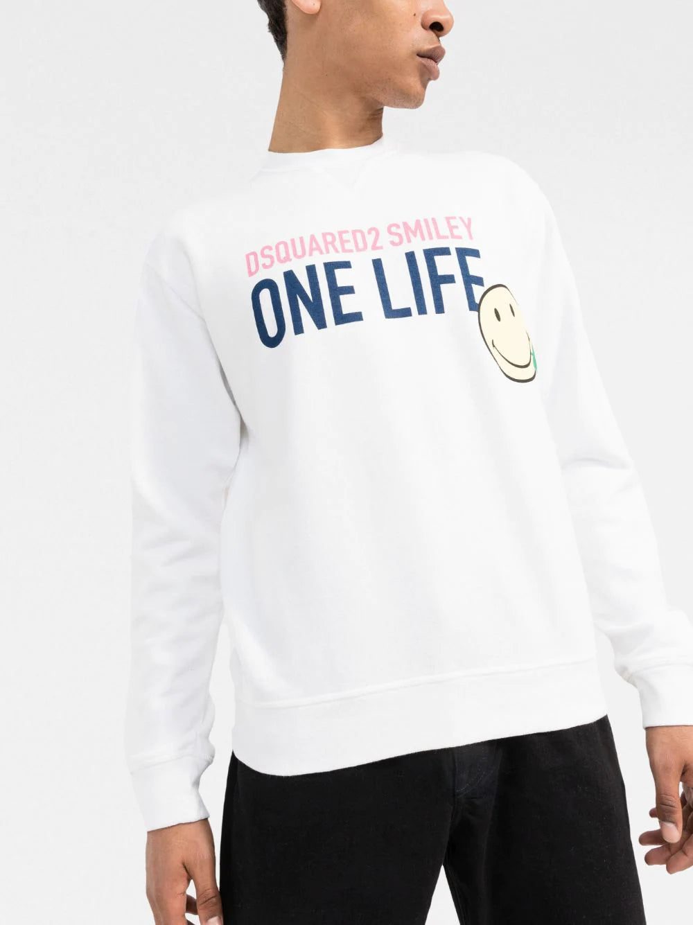 Decorated with a colourful slogan-style logo print reading 'one life one planet', this Dsquared2 sweatshirt is crafted in a white cotton design, exhibiting the brand's street-ready appeal.