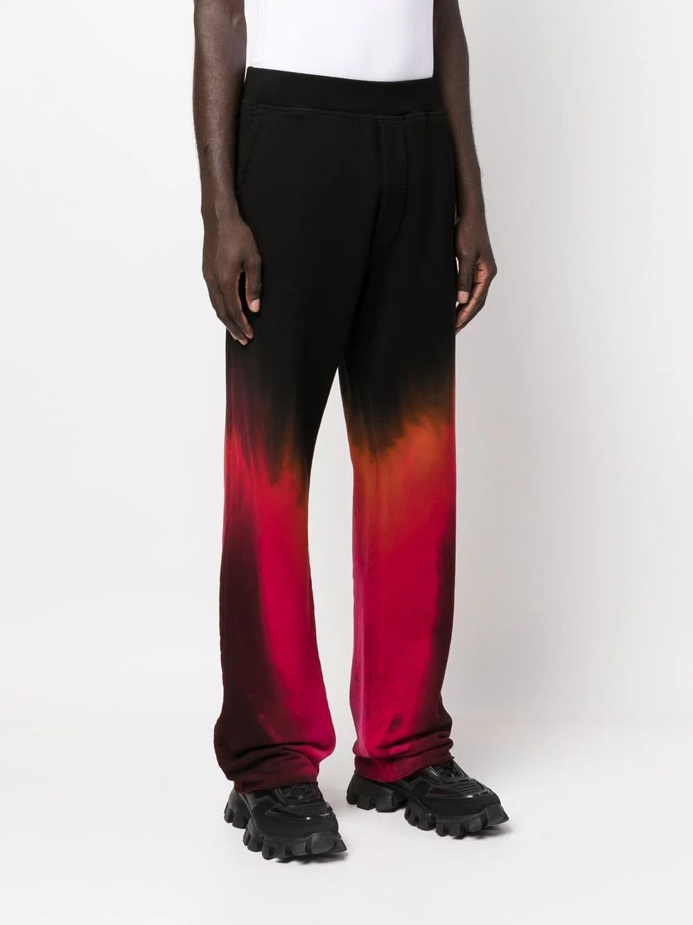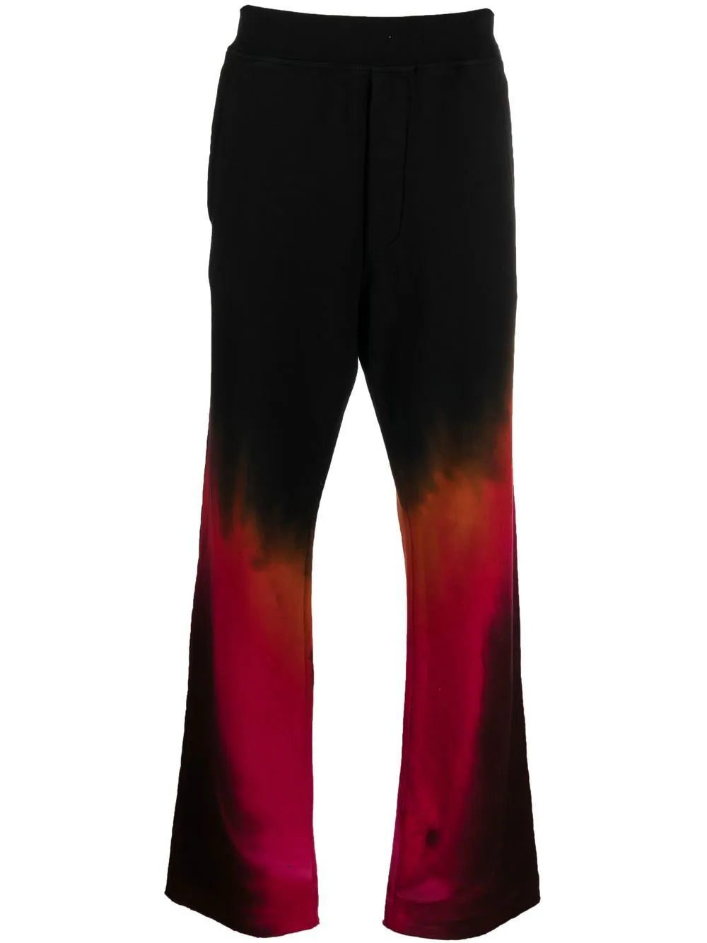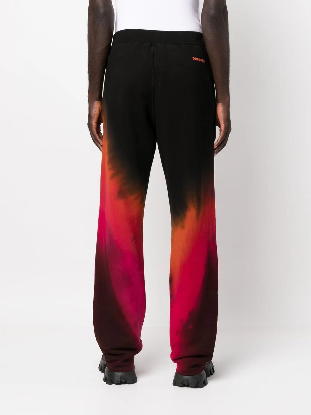 tie-dye straight-leg sweatpants from DSQUARED2 featuring black/multicolour, cotton, jersey knit, tie-dye print, logo print to the rear, elasticated waistband, straight leg and two diagonal pockets to the sides.