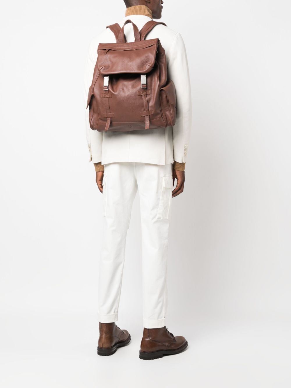 double-buckle fastening leather backpack