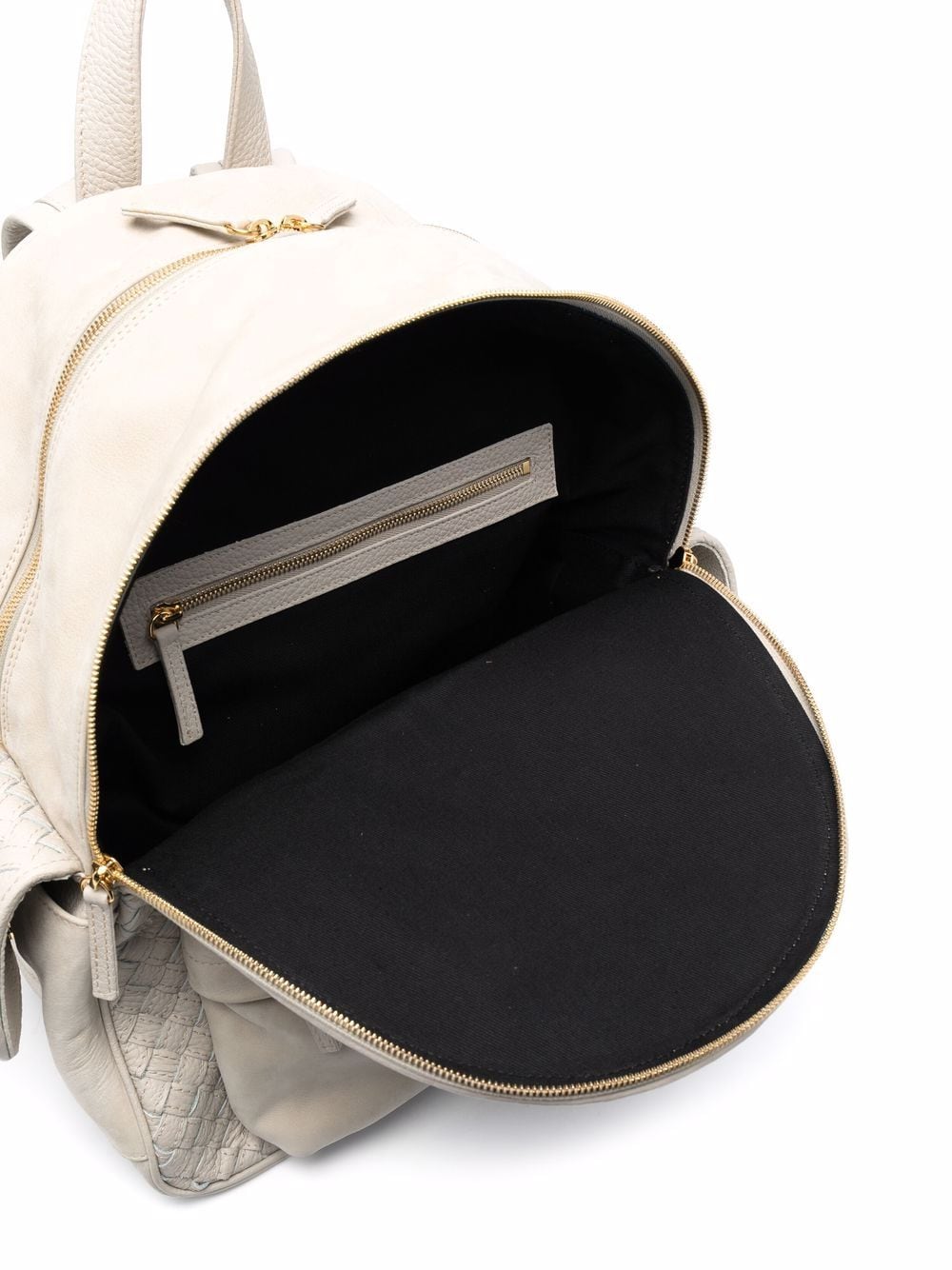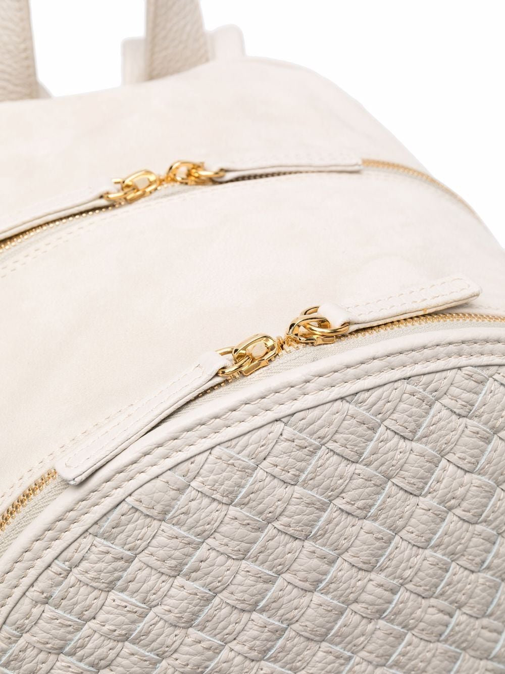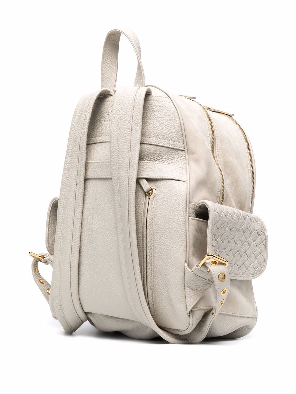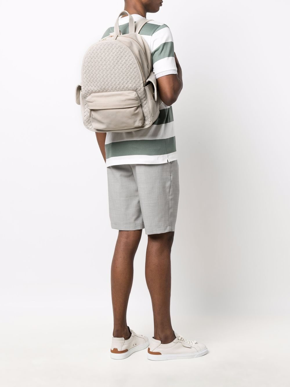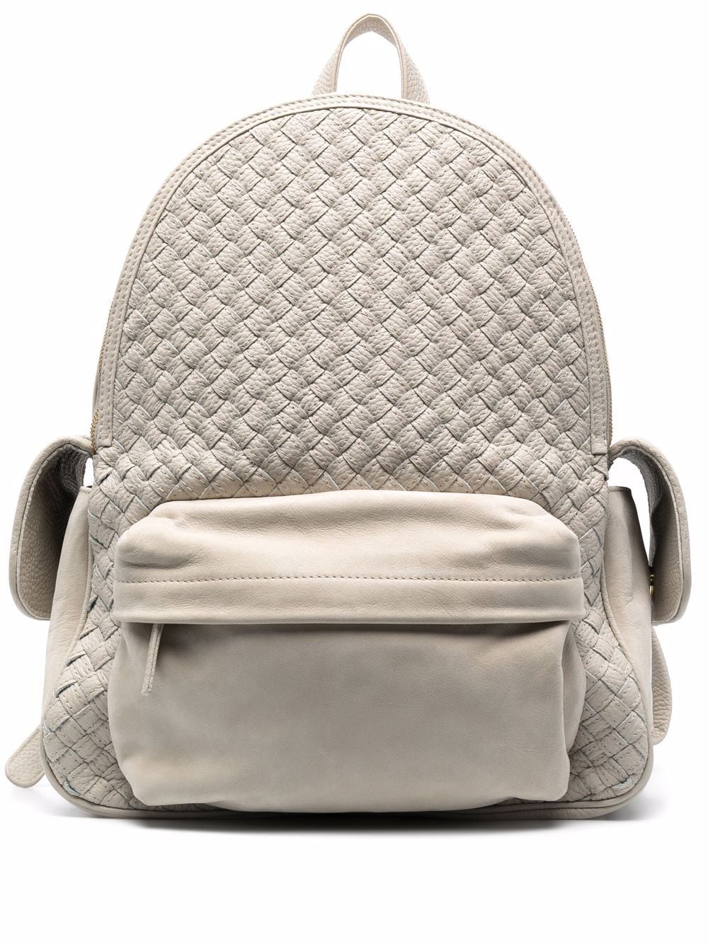 woven panel leather backpack