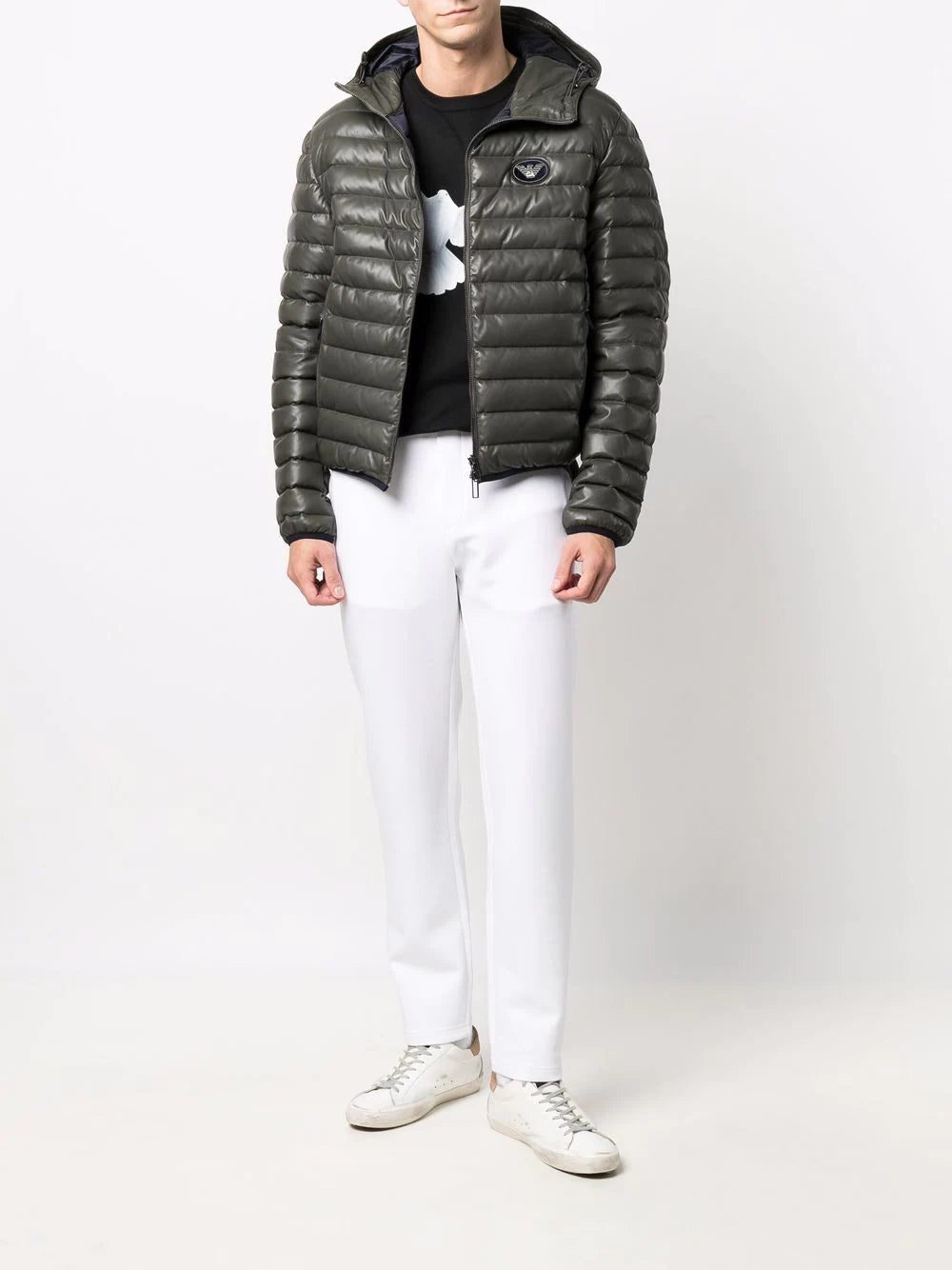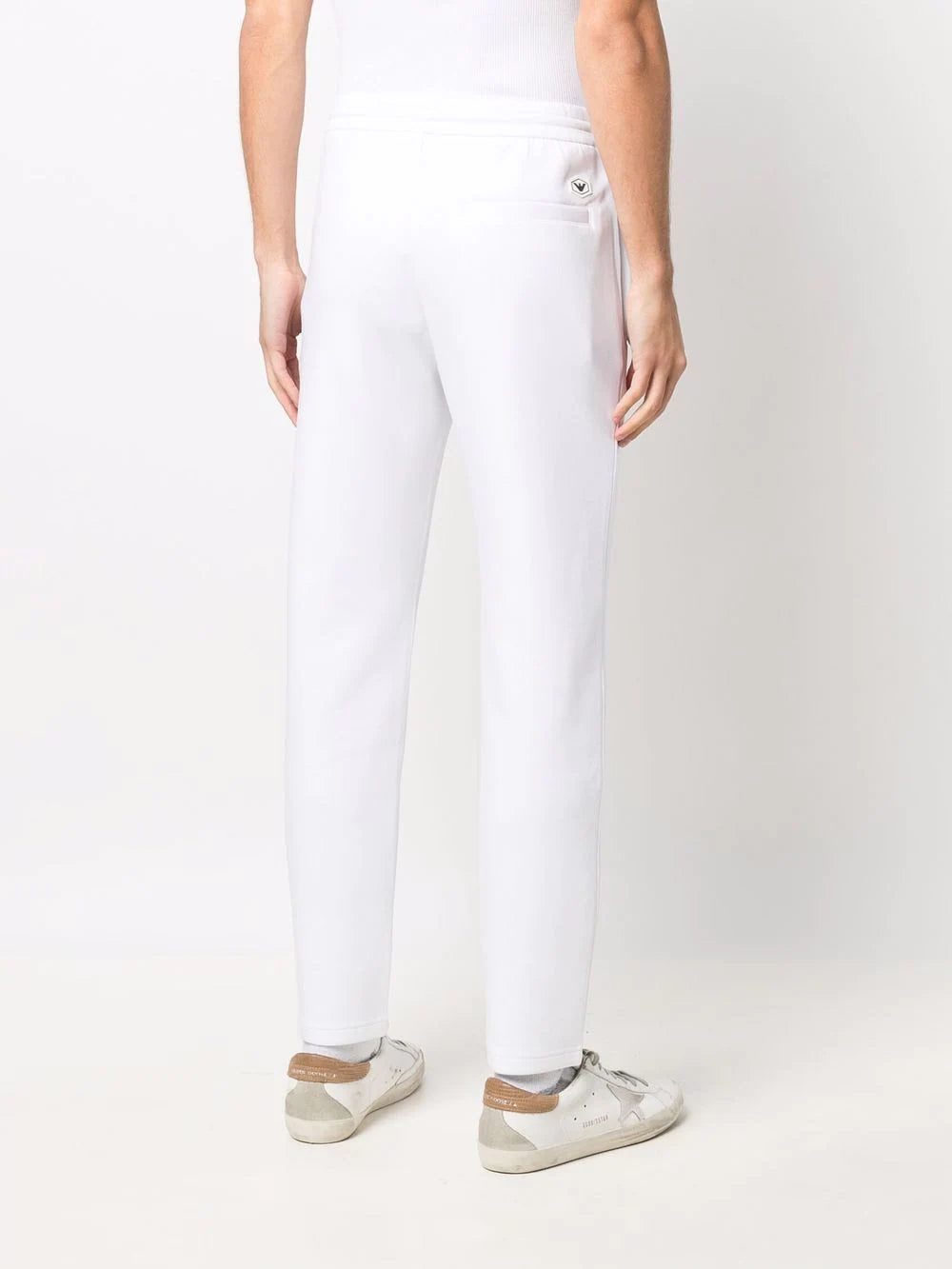 Emporio Armani presents athleisure wear in a monochrome colour palette for AW21. These trackpants are crafted from stretch cotton and boast a small logo to the rear for a discreet take on branding.