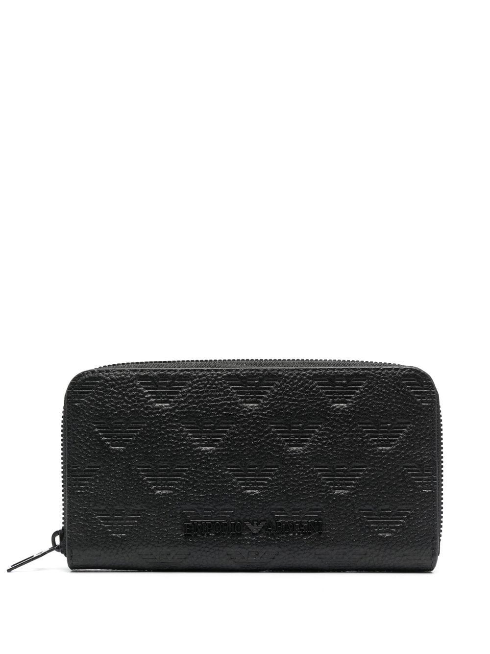 black calf leather all-over debossed logo print rectangle shape all-around zip fastening internal card slots internal zip-fastening pocket