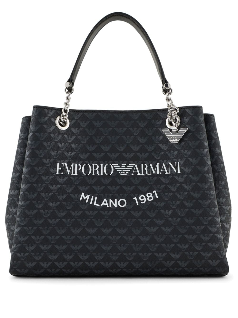 This tote bag from Emporio Armani is a perfect blend of style and functionality. The acessory highlights the iconic eagle and Milano 1981 logo, which adds to its appeal; and comes with a double handle and an adjustable and detachable shoulder strap, making it a practical accessory for everyday use.
