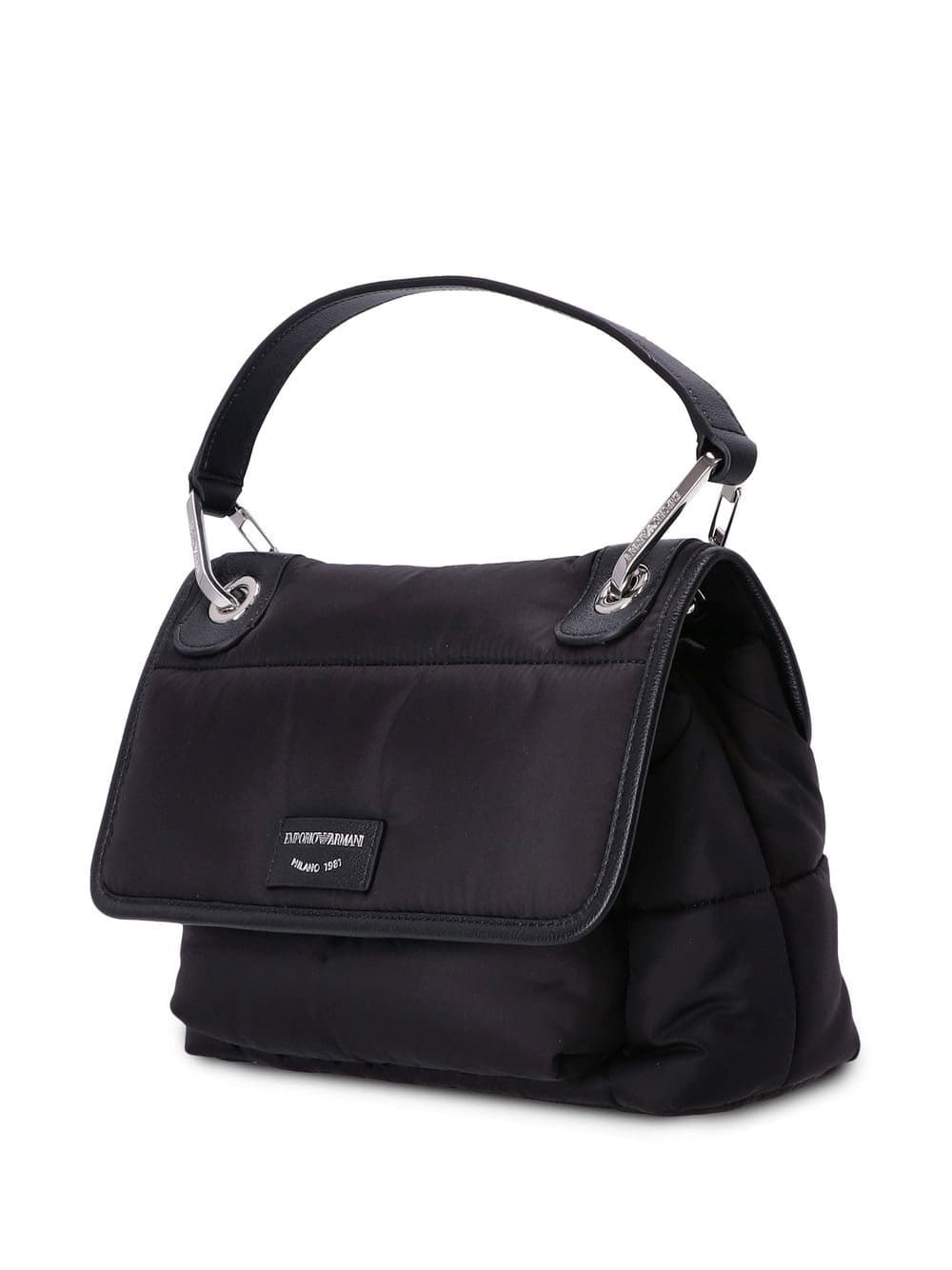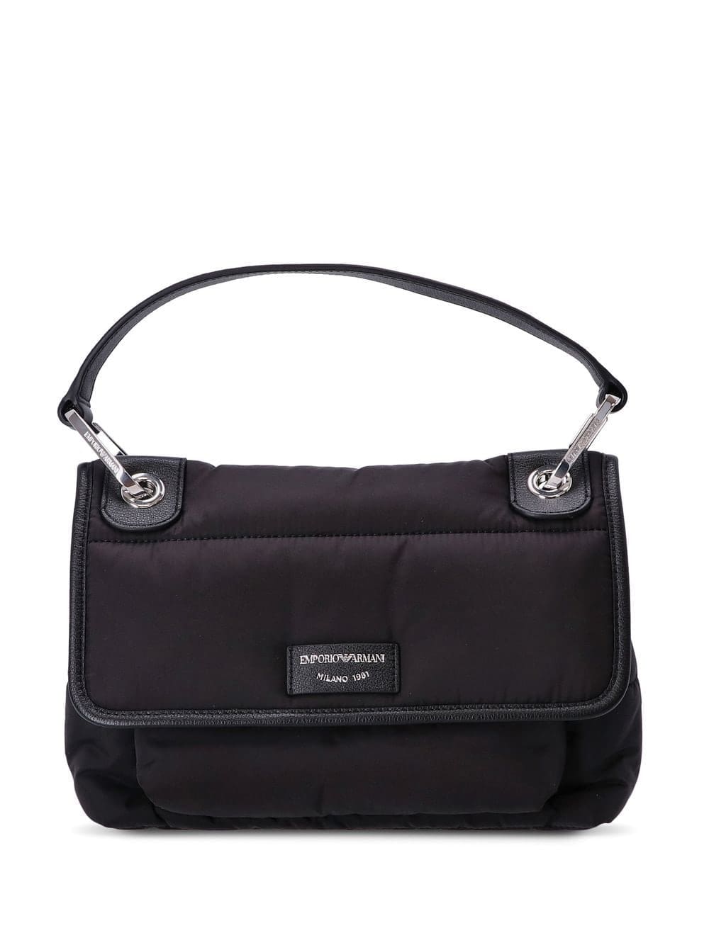 black padded design single flat top handle logo patch to the front main compartment