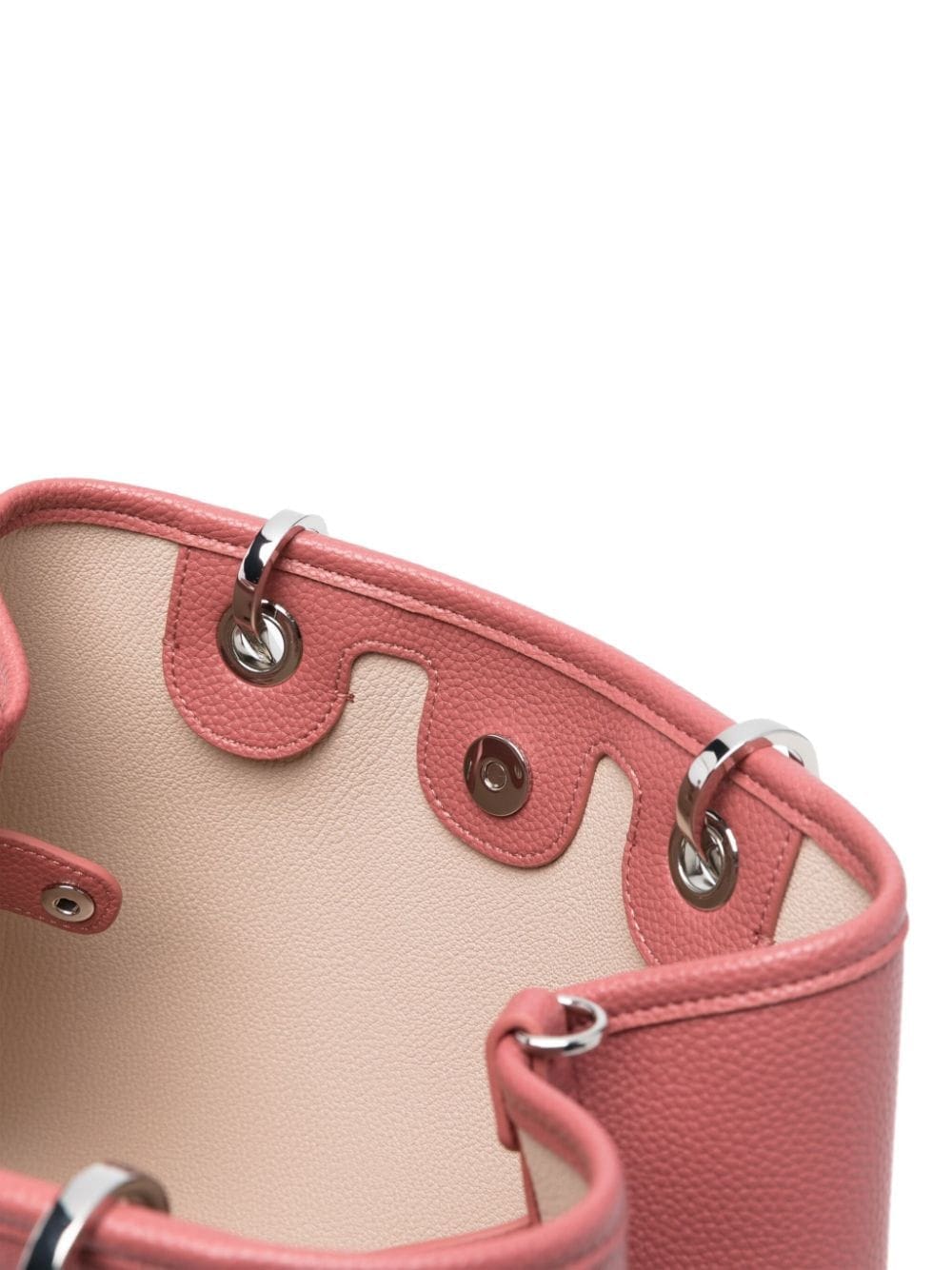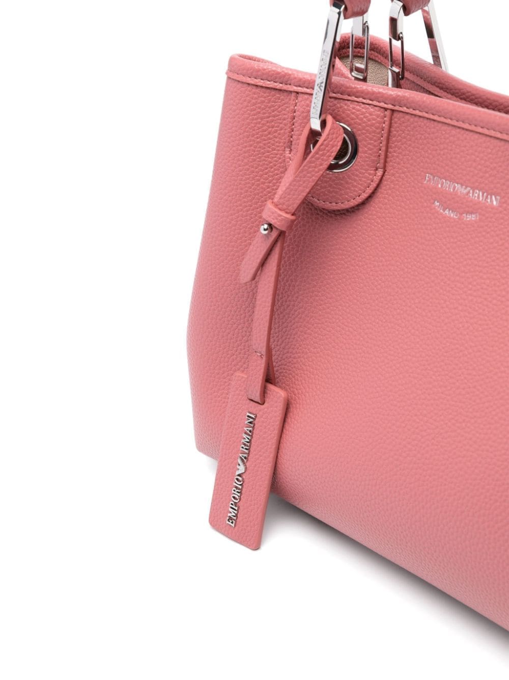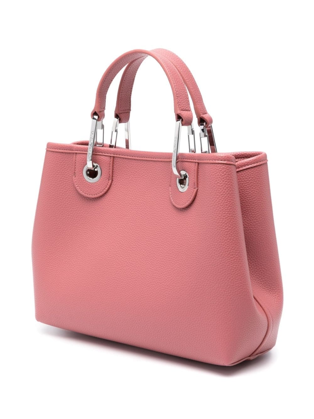 Emporio Armani's small MyEA tote bag is emblematic of the brand’s practical and refined aesthetic. Crafted from pink faux leather, it’s suspended by two top handles and comes with a detachable logo-jacquard strap for variable styling. The interior is complete with a removable pouch.