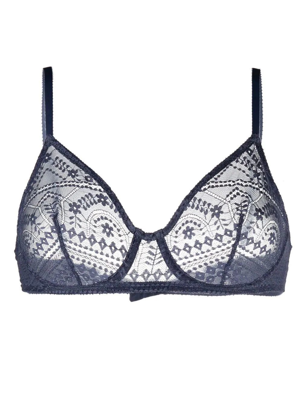 Designed for a 'second skin' feel, ERES' Ecorce bra is re-imagined for SS23 in a deep blue iteration complete with a romantic jacquard lace construction. Benefiting from a wired design for added support, it channels the brand's minimalist take on garments.