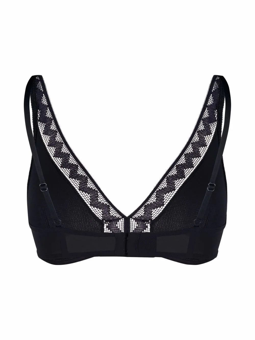blue soft cup zigzag edge rear hook and eye fastening adjustable shoulder straps Just a reminder that this piece must be tried on over your own garments.