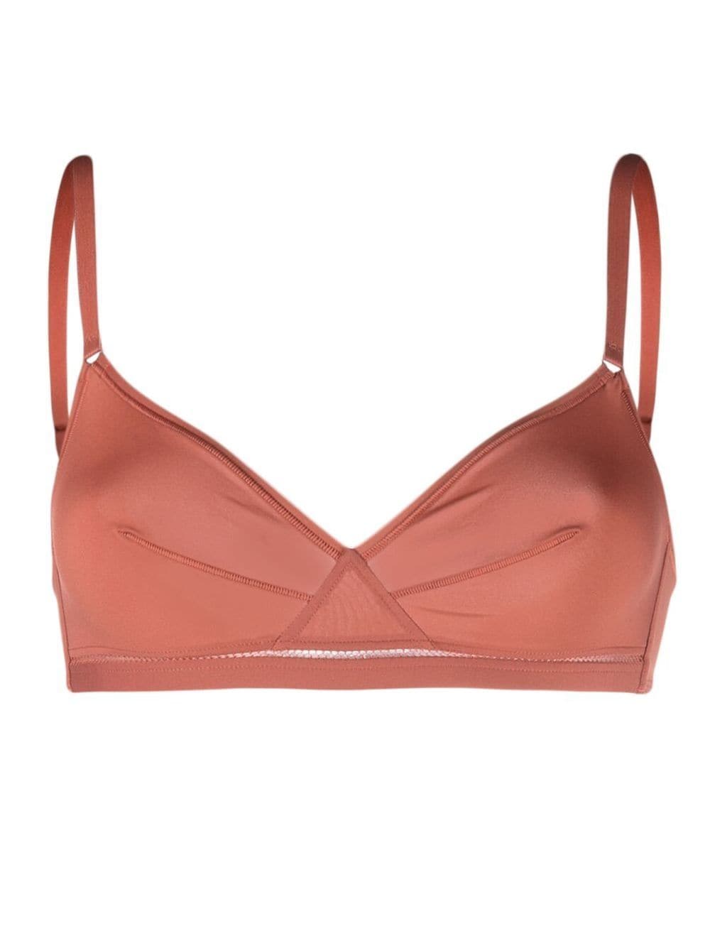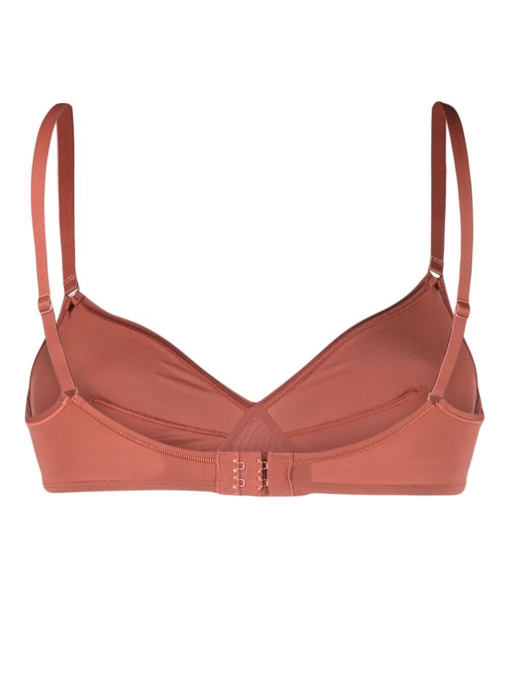 Inspired by the brand's French roots, ERES is known for creating effortlessly sophisticated designs. Seen on this triangle-cup bra, sleek spaghetti-straps are met with a brown colourway, which ties in with minimalist trends.