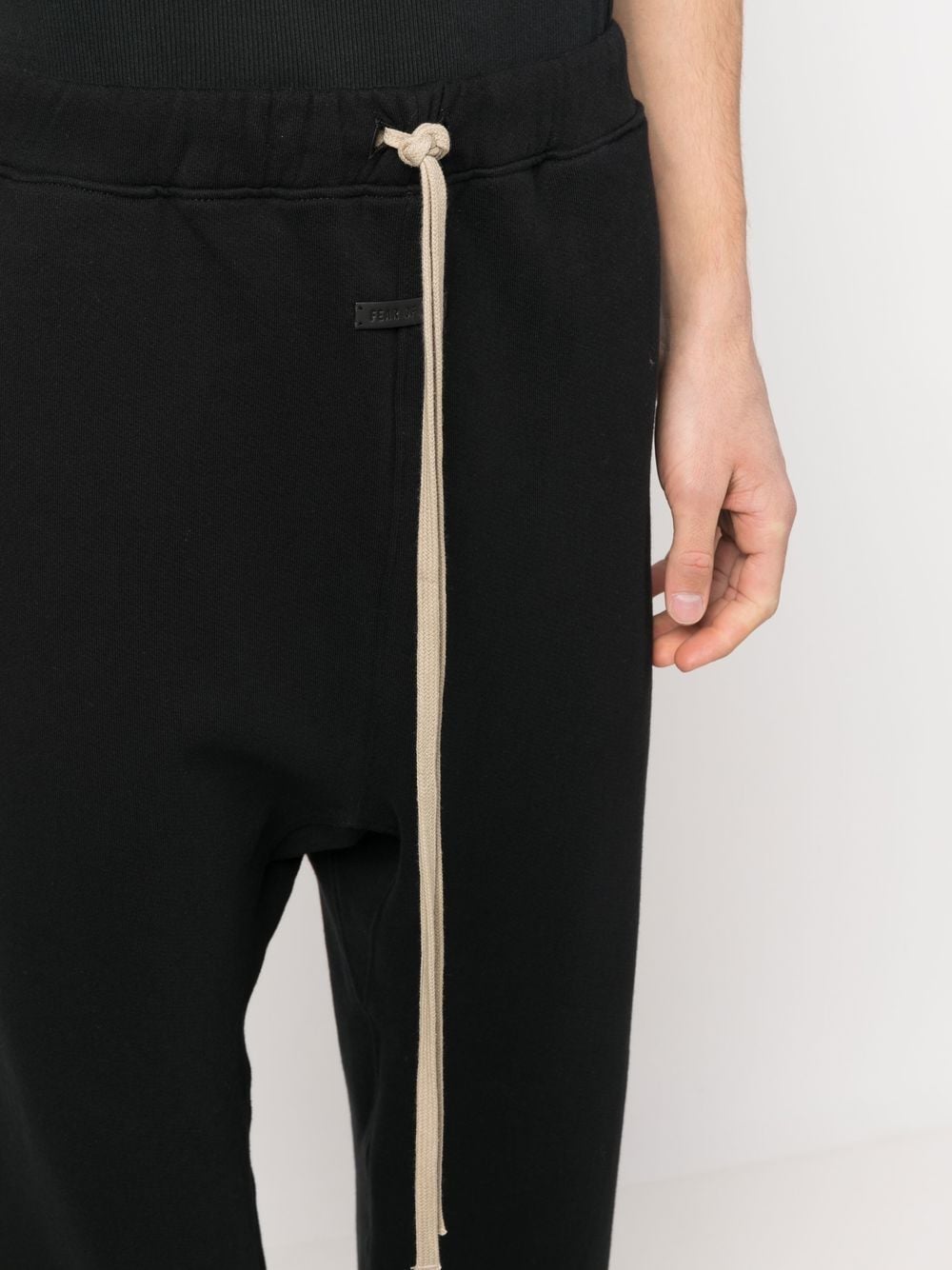 drawstring track pants from FEAR OF GOD featuring elasticated waistband, drawstring fastening, two diagonal pockets to the sides, elasticated cuffs, black and cotton.