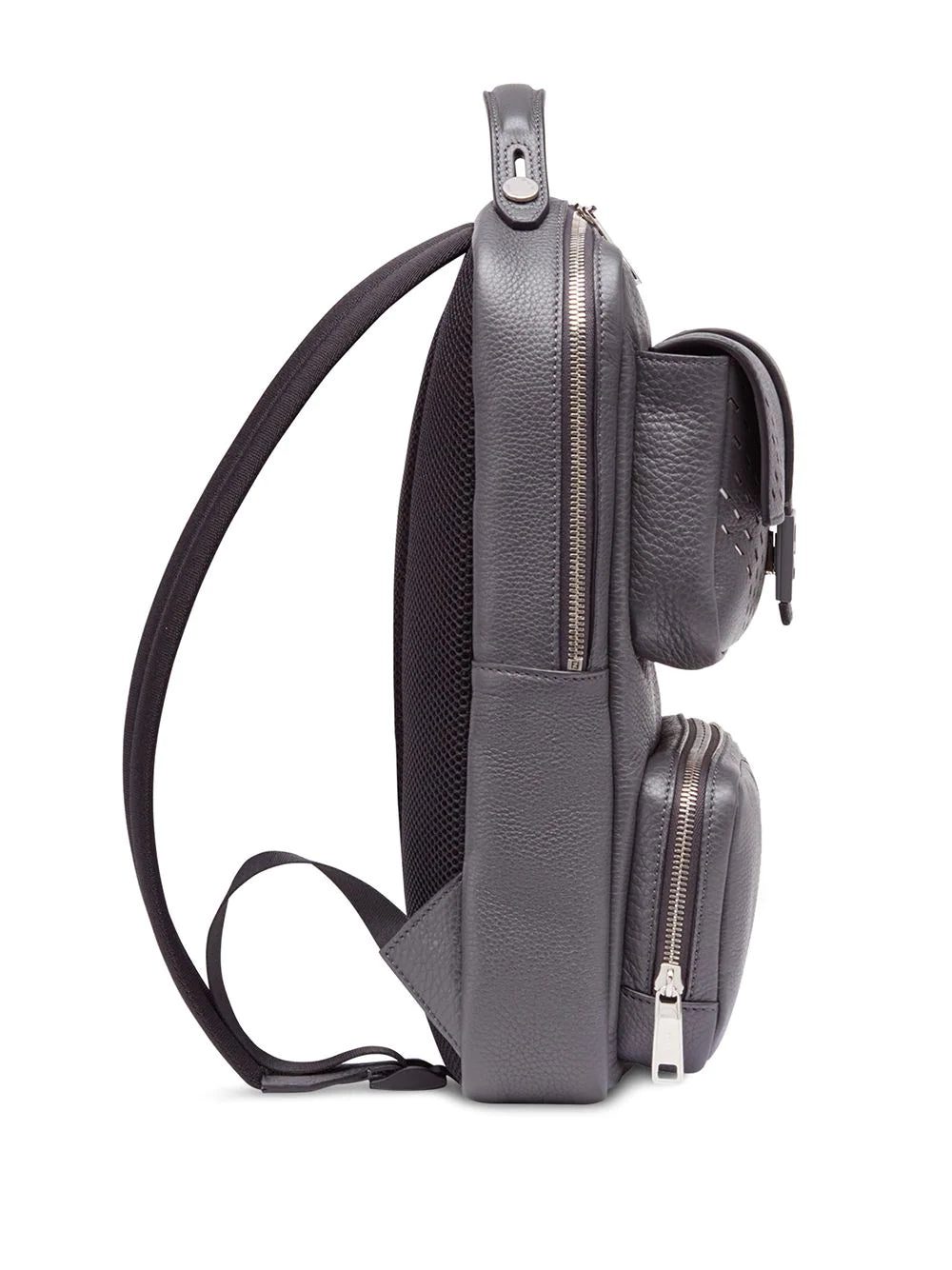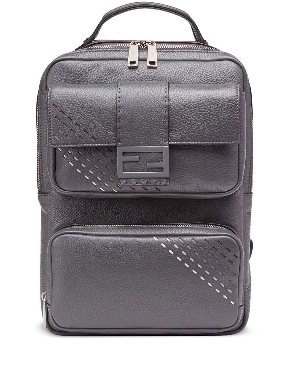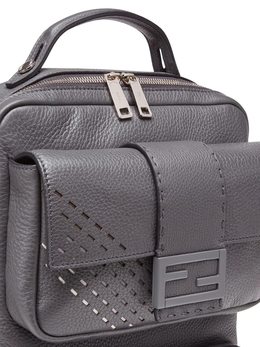 Modernise your look. This Fendi backpack features subtle cut out details that combine with the muted tone for a sleek impact. Style is key. Featuring a signature Baguette front logo plaque, cut out details, a top zip fastening, shoulder straps, a round top handle, a front flap pocket and a front zip pocket.