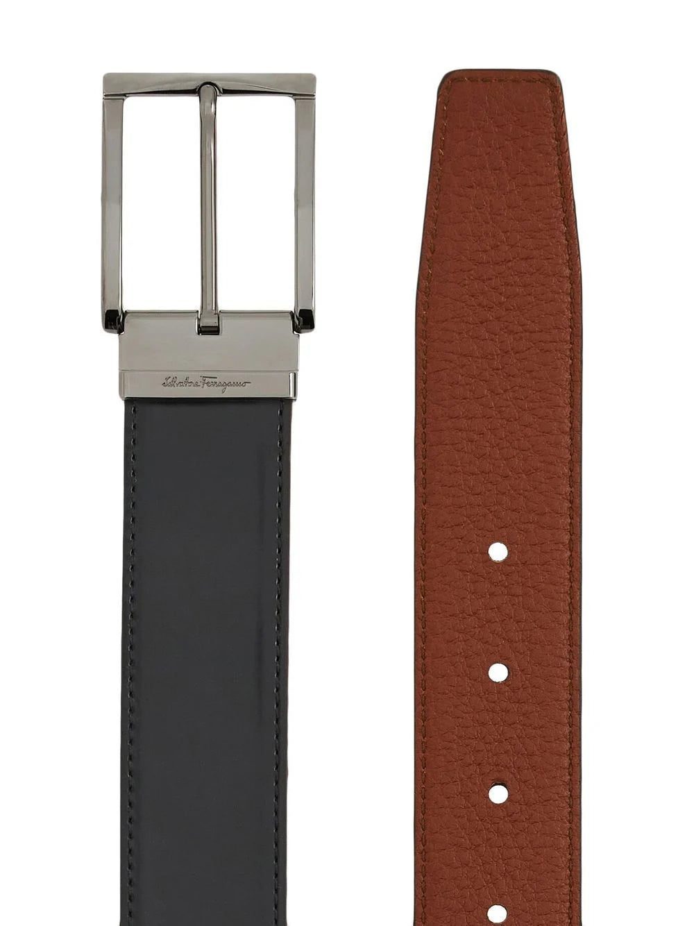 black brown silver-tone hardware reversible buckle fastening buckle fastening punched holes adjustable fit