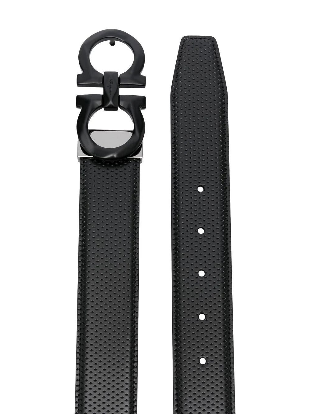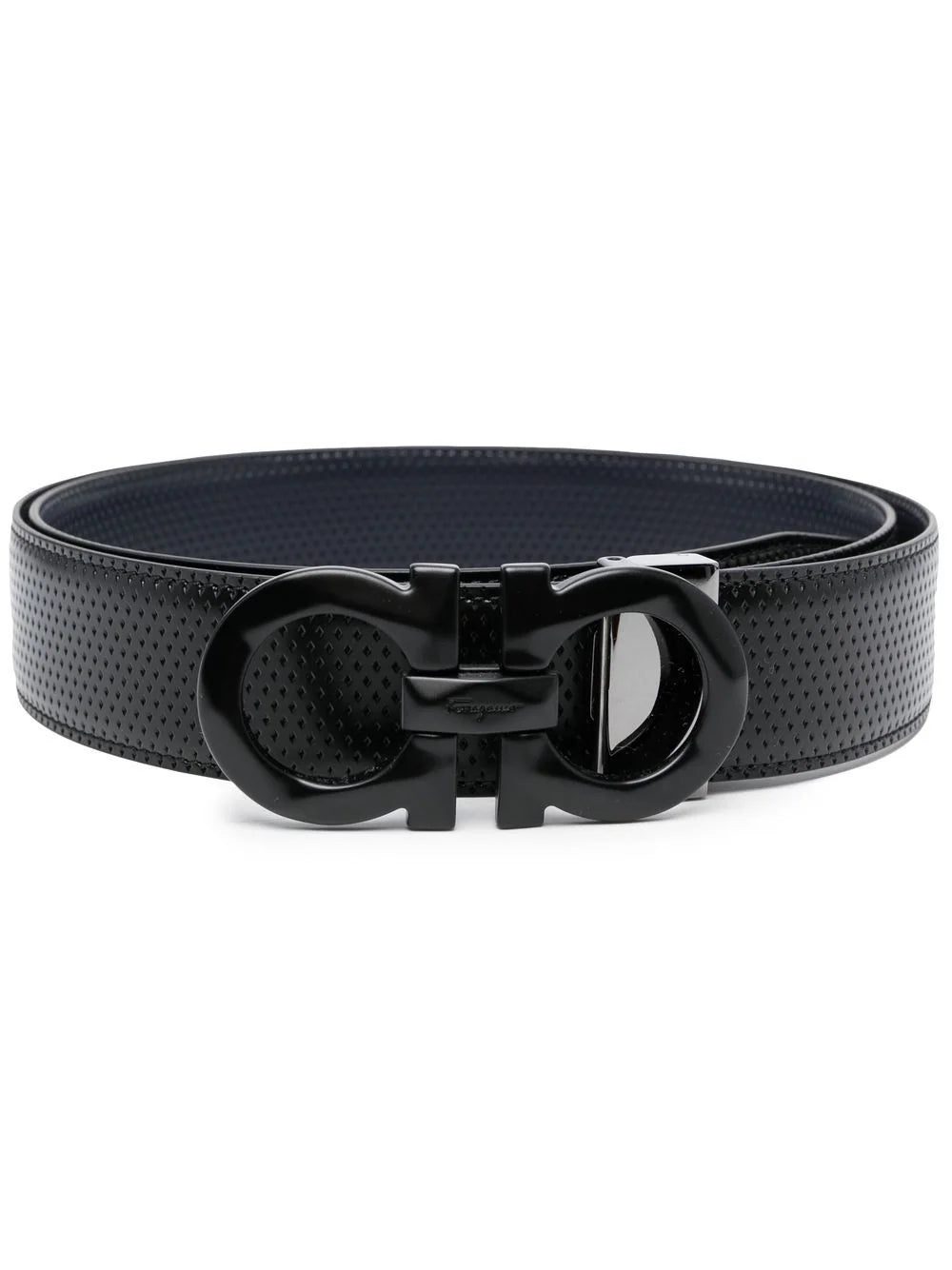black calf leather Gancini buckle adjustable fit punched holes