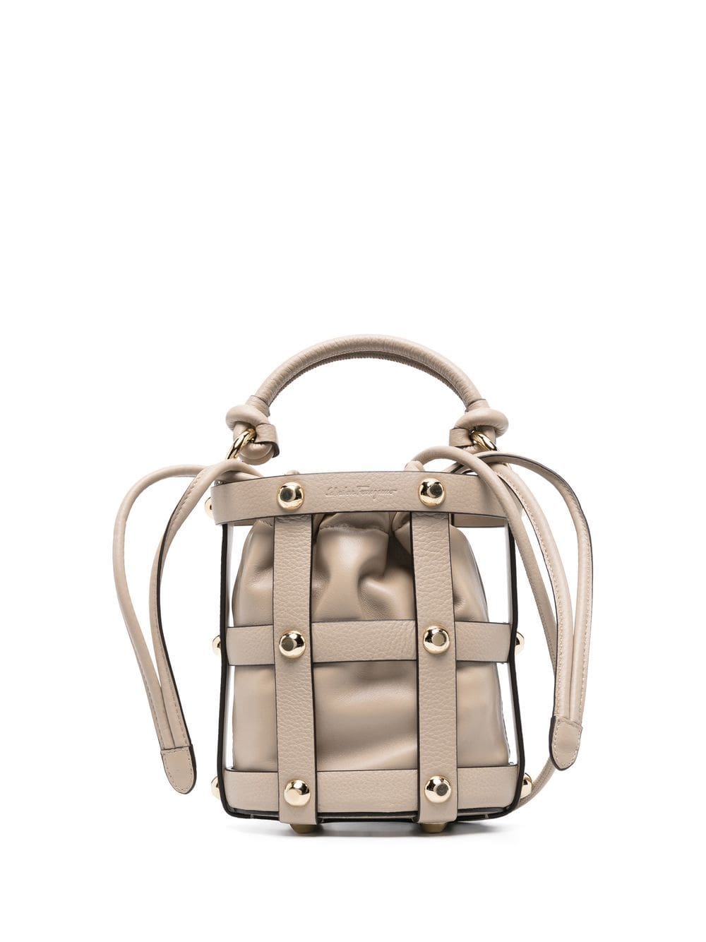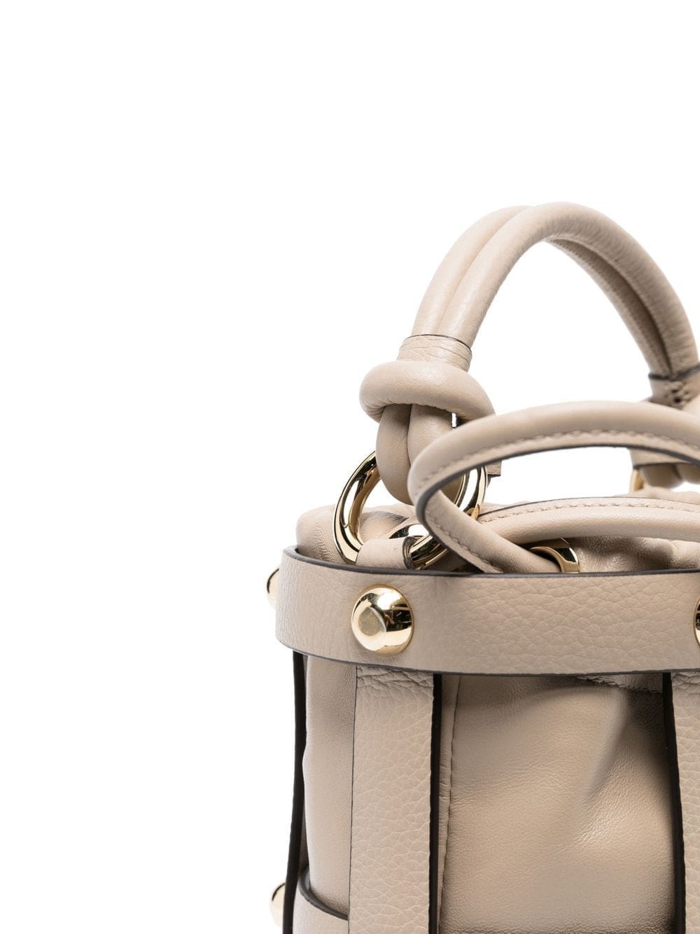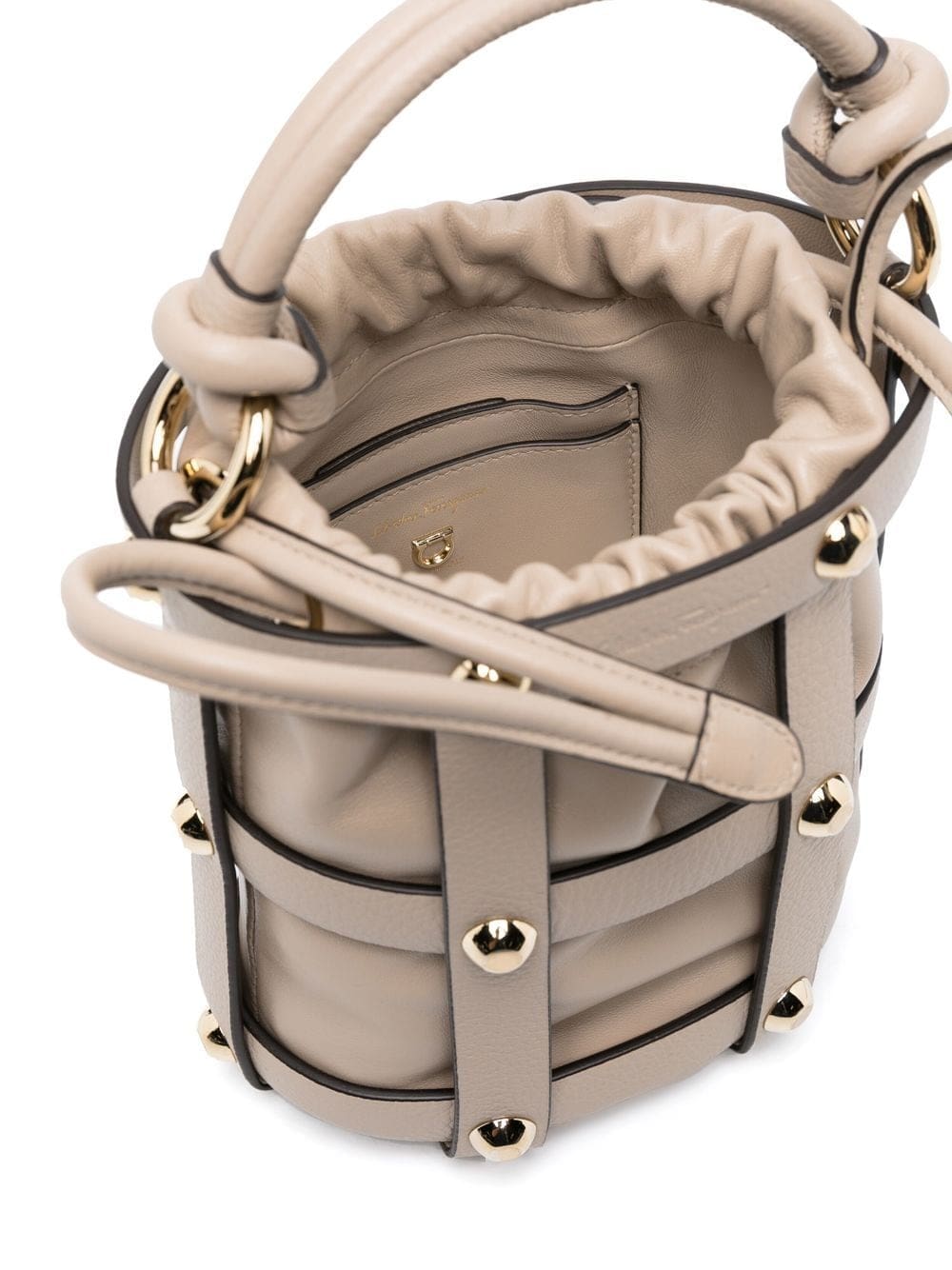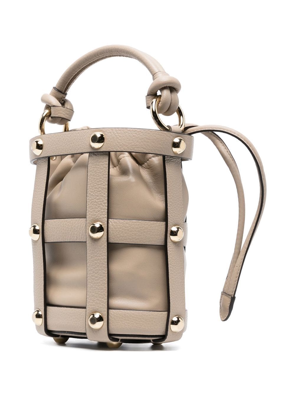 light brown calf leather grained texture gold-tone stud detailing drawstring fastening single flat top handle main compartment