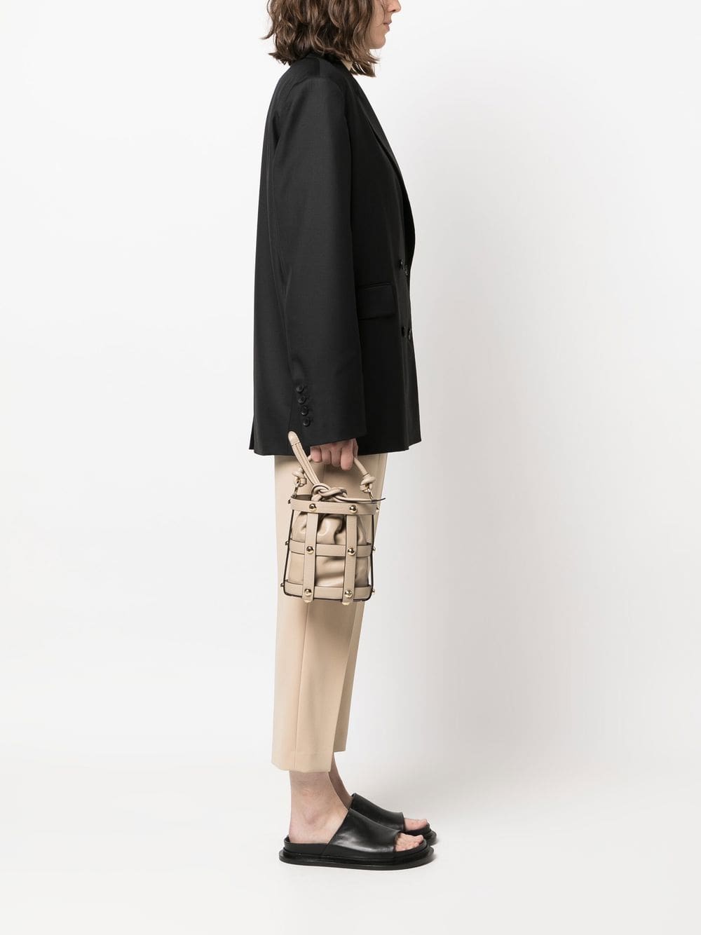 drawstring leather bucket bag