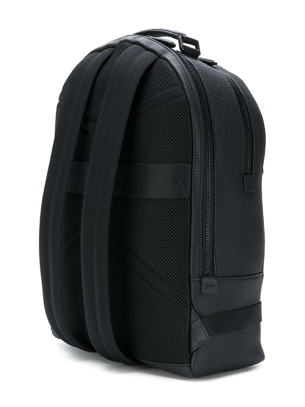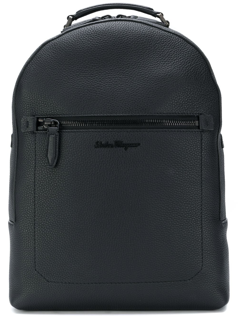 The definition of Italian luxury, Ferragamo prides itself on a seamless blend of high-quality materials, impeccable craftsmanship and a timeless design vision. This black embroidered logo backpack from the designer's SS18 collection is expertly constructed from high quality Italian calf leather. It features a flat top handle, a top zip fastening, a front zip compartment, an embroidered logo to the front, a pebbled leather texture and shoulder straps.