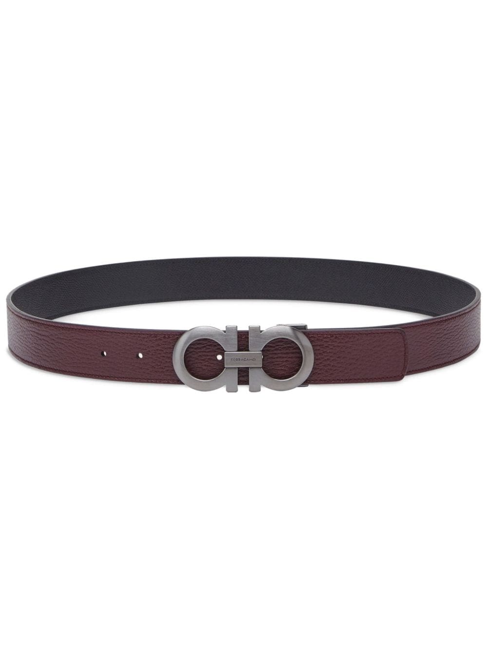 Crafted from brown and black leather, this reversible Salvatore Ferragamo belt spotlights the label's iconic Gancini plaque as a silver-tone buckle - the hardware is inspired by the decorative detailing on the gates of the label's Italian headquarters.