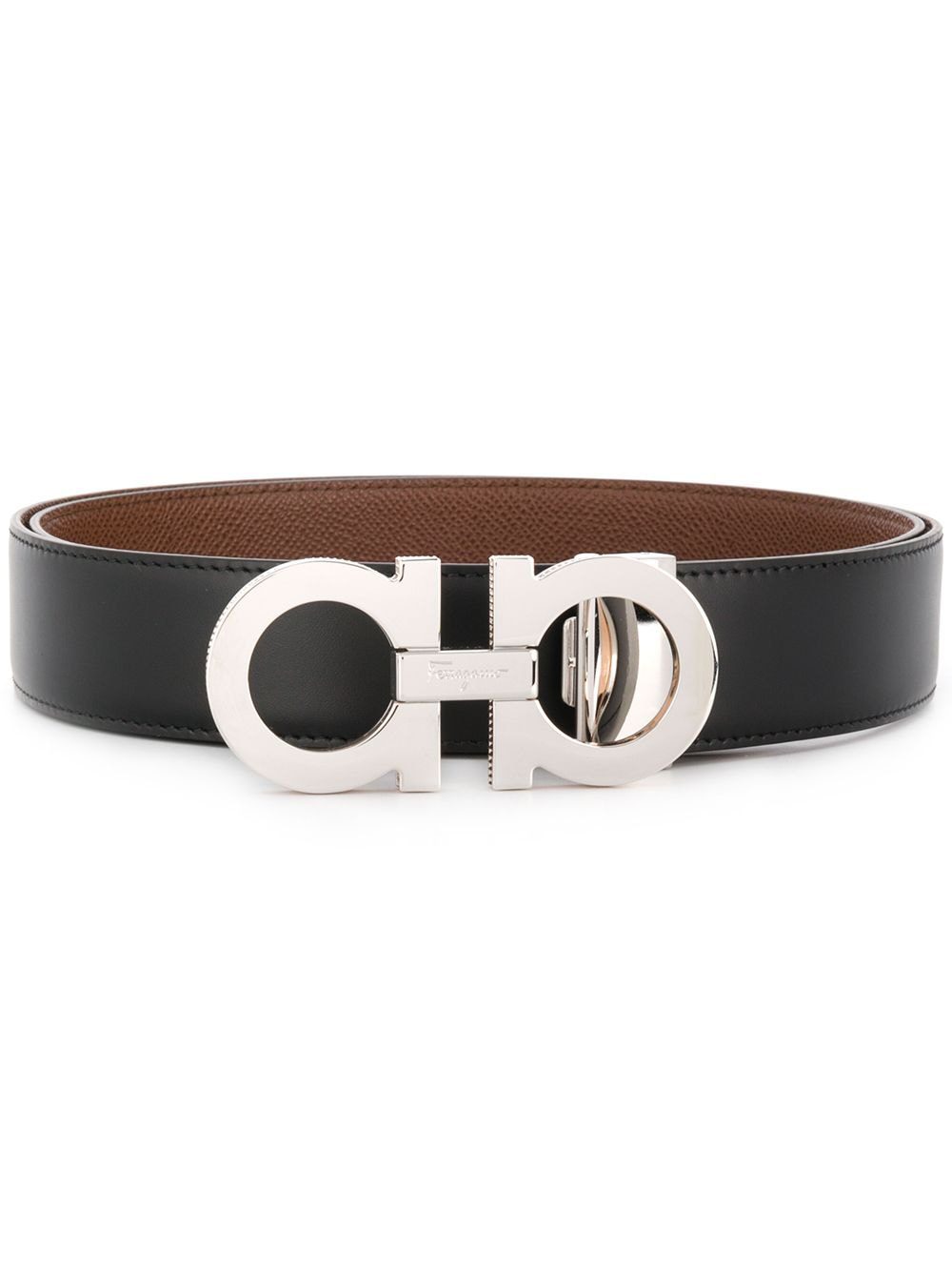 We all love a life hack, that's why Salvatore Ferragamo brings us two belts is one. Featuring a pebbled leather texture, a two tone design, a silver-tone buckle fastening and an adjustable fit, black and brown calfskin leather Gancini reversible belt takes the stress out of holding you trousers up.
