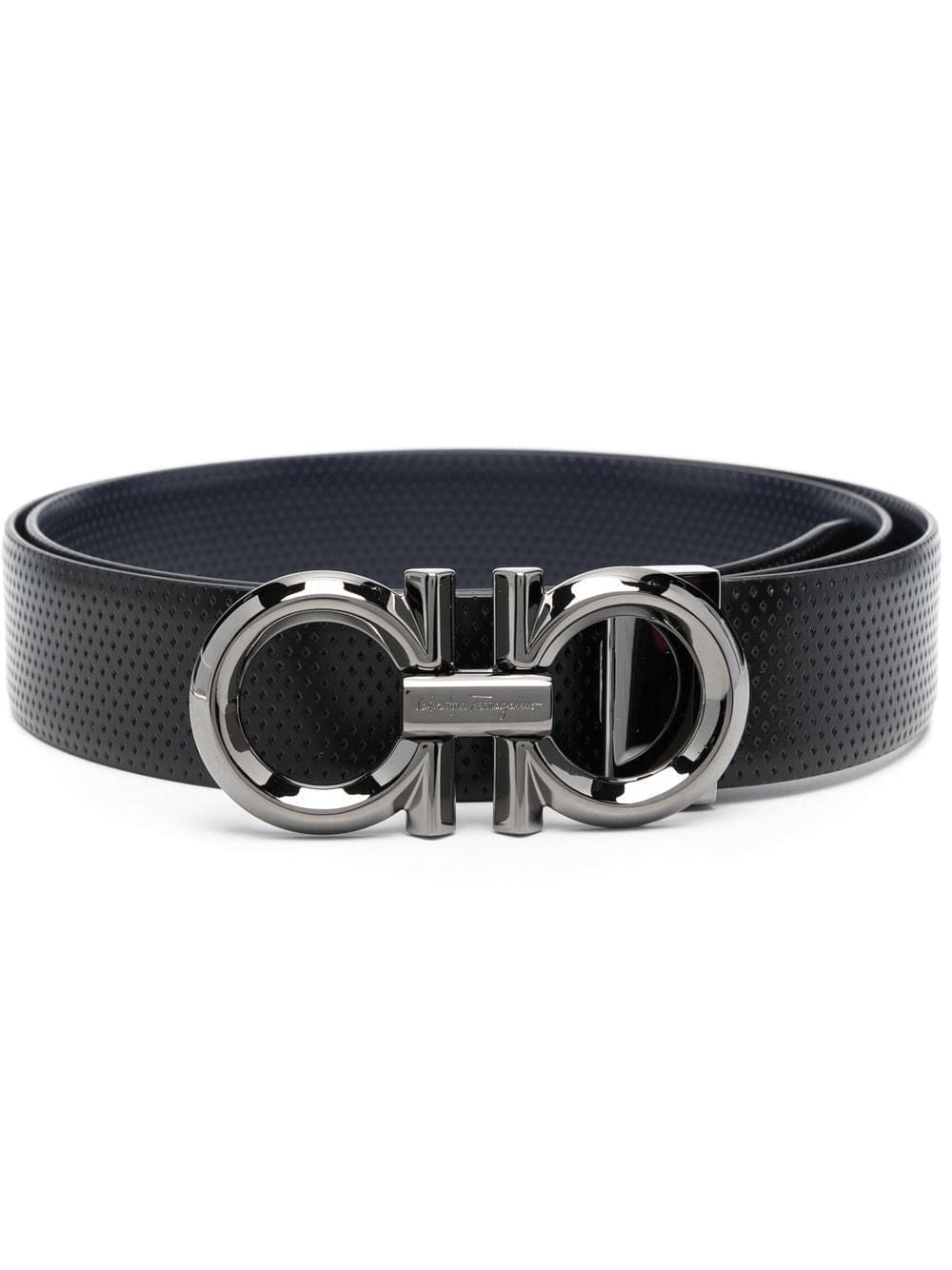 black calf leather oxidised finish logo buckle fastening adjustable fit punched holes