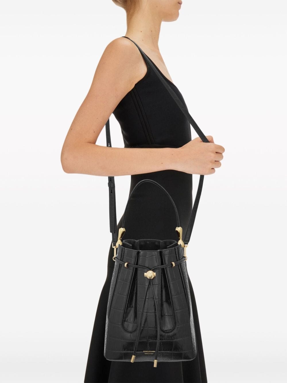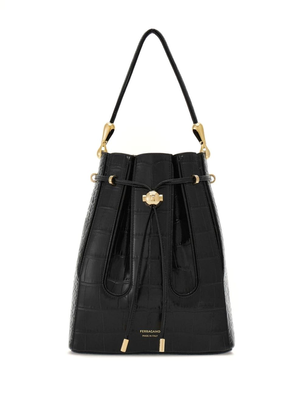 medium embossed-effect leather bucket bag