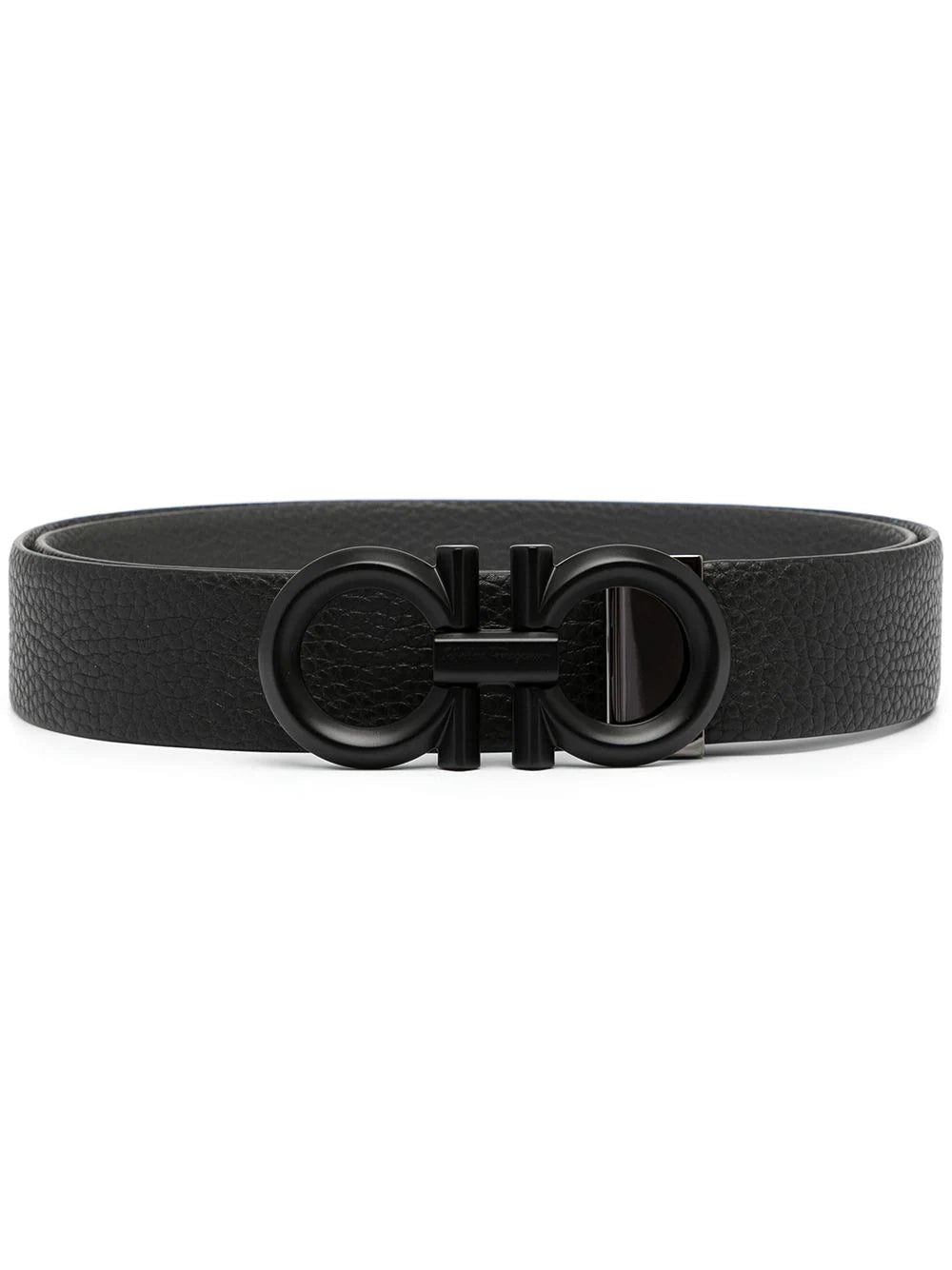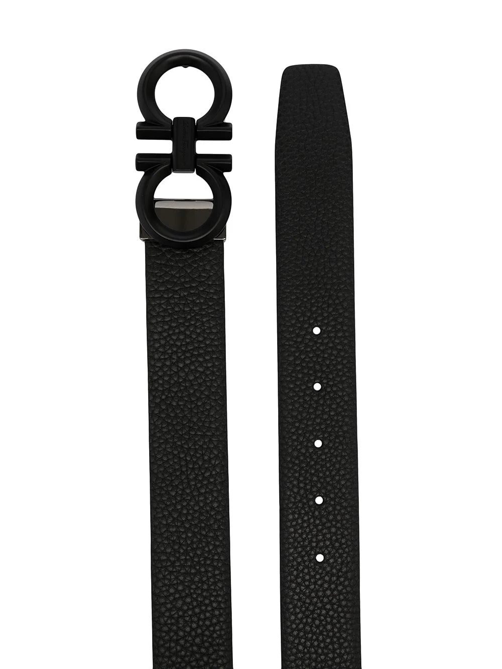 Black calf leather double Gancio buckle belt from Ferragamo.