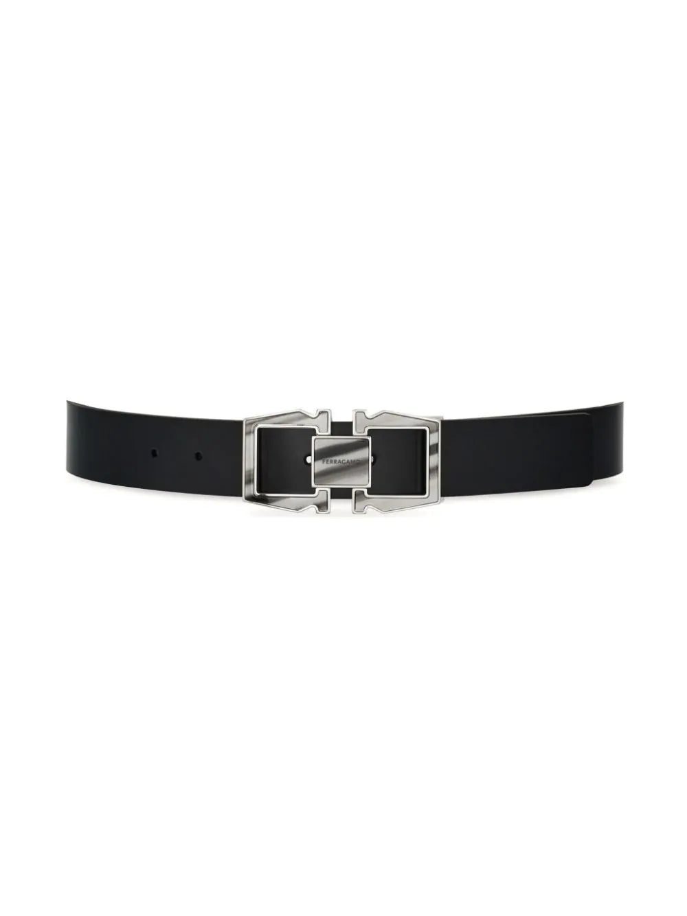 With its contemporary allure and luxurious finish, this reversible, adjustable belt is the perfect finishing touch to give your outfit a high end feel. The calfskin shaft is smooth, with a large Gancio buckle with a shaded resin inlay. To adjust the size, the shaft can be cut or have extra holes punctured in it. This service is available in all Ferragamo boutiques