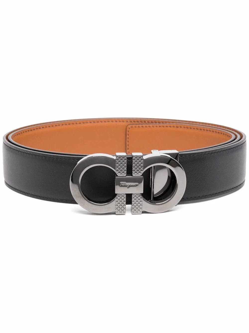 Black/brown calf leather reversible Gancini belt from Ferragamo.