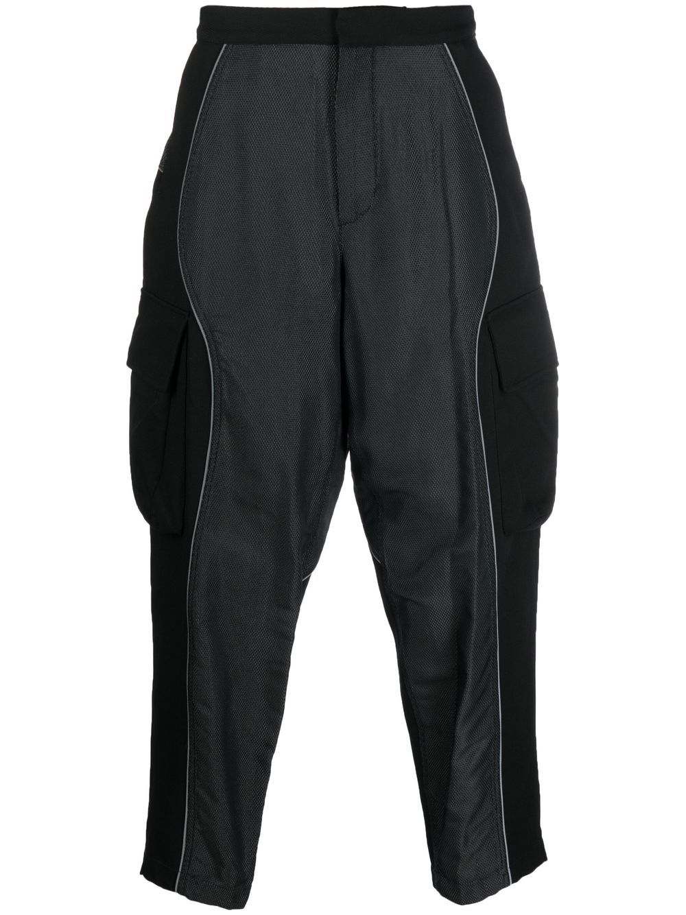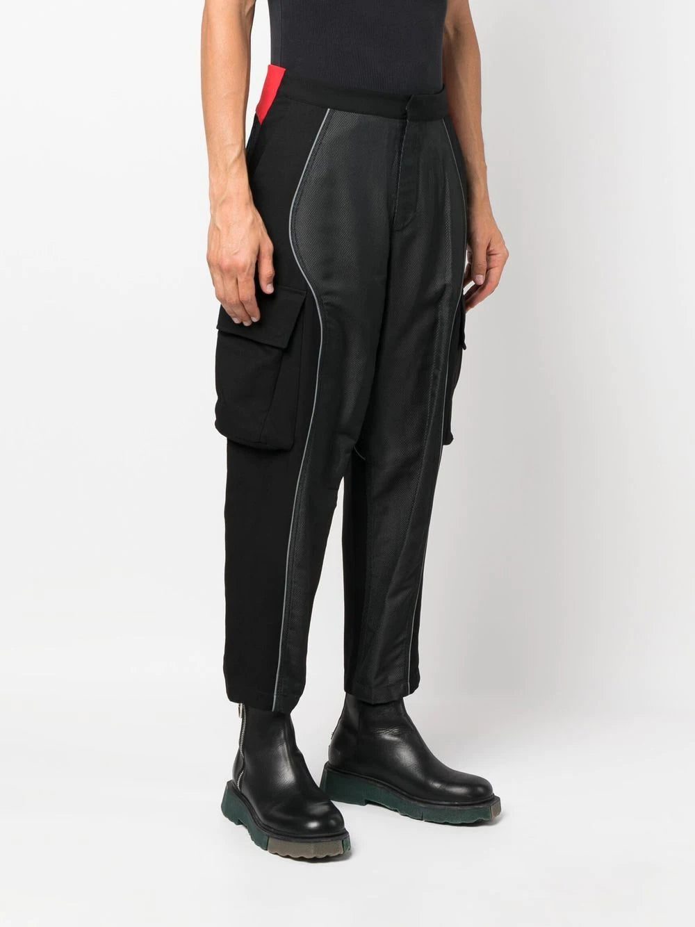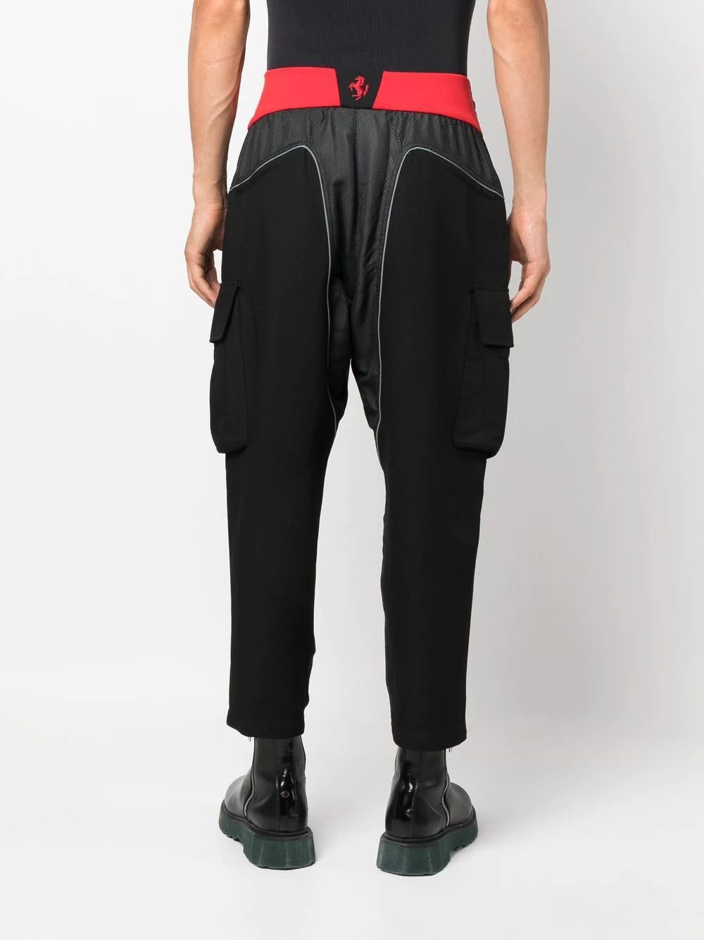 cropped panelled track pants from Ferrari featuring dark grey, flame red, panelled design, logo patch to the front, two diagonal pockets to the sides and cropped leg.