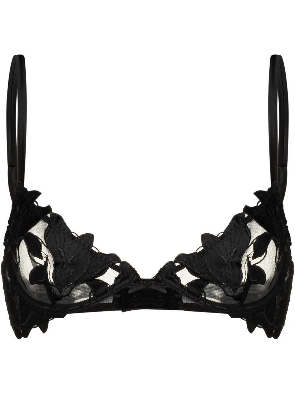 Fleur Du Mal embraces their dainty aesthetic in this Lily demi-bra through its sultry black hue and delicate floral embroidered design.