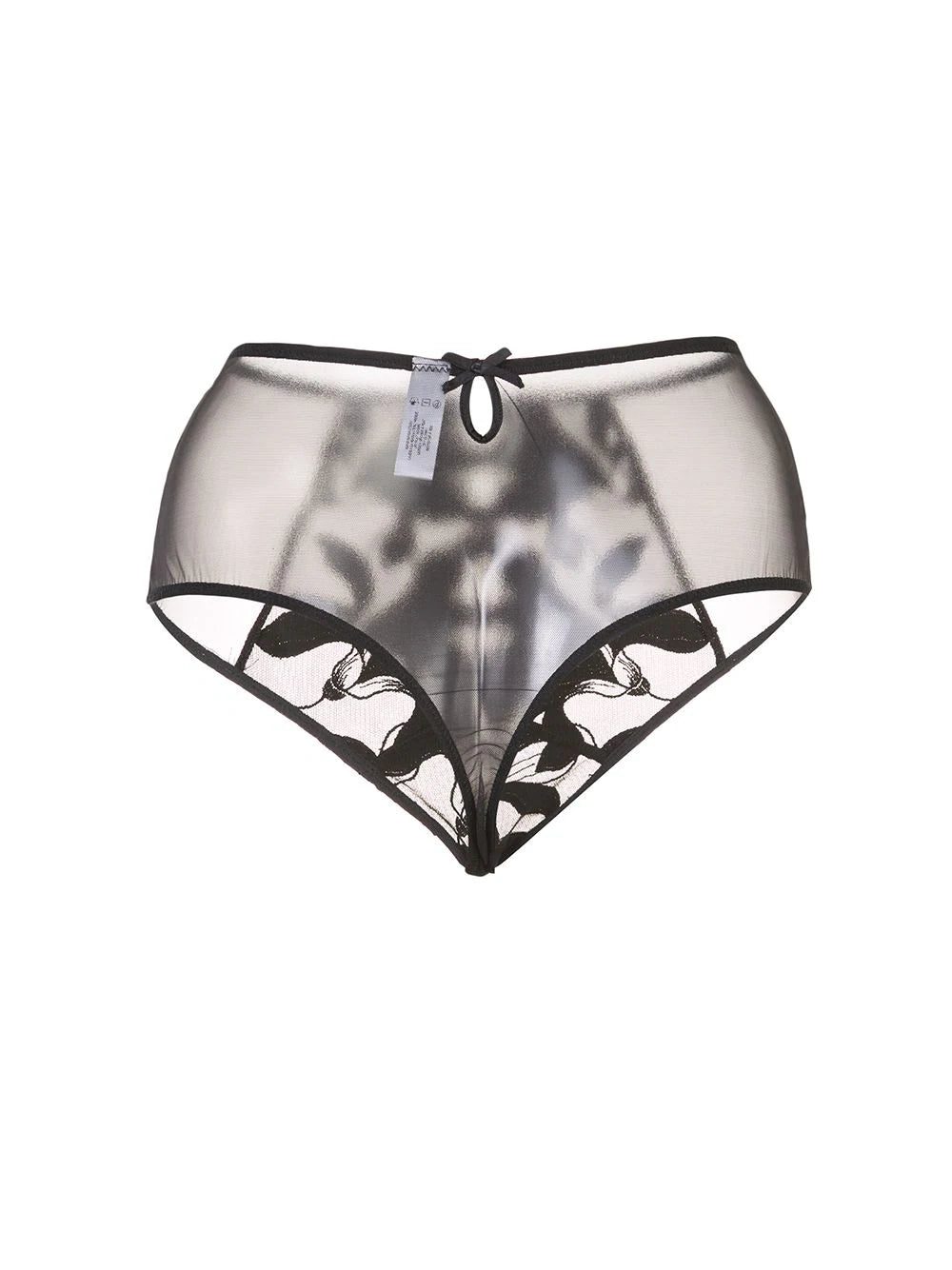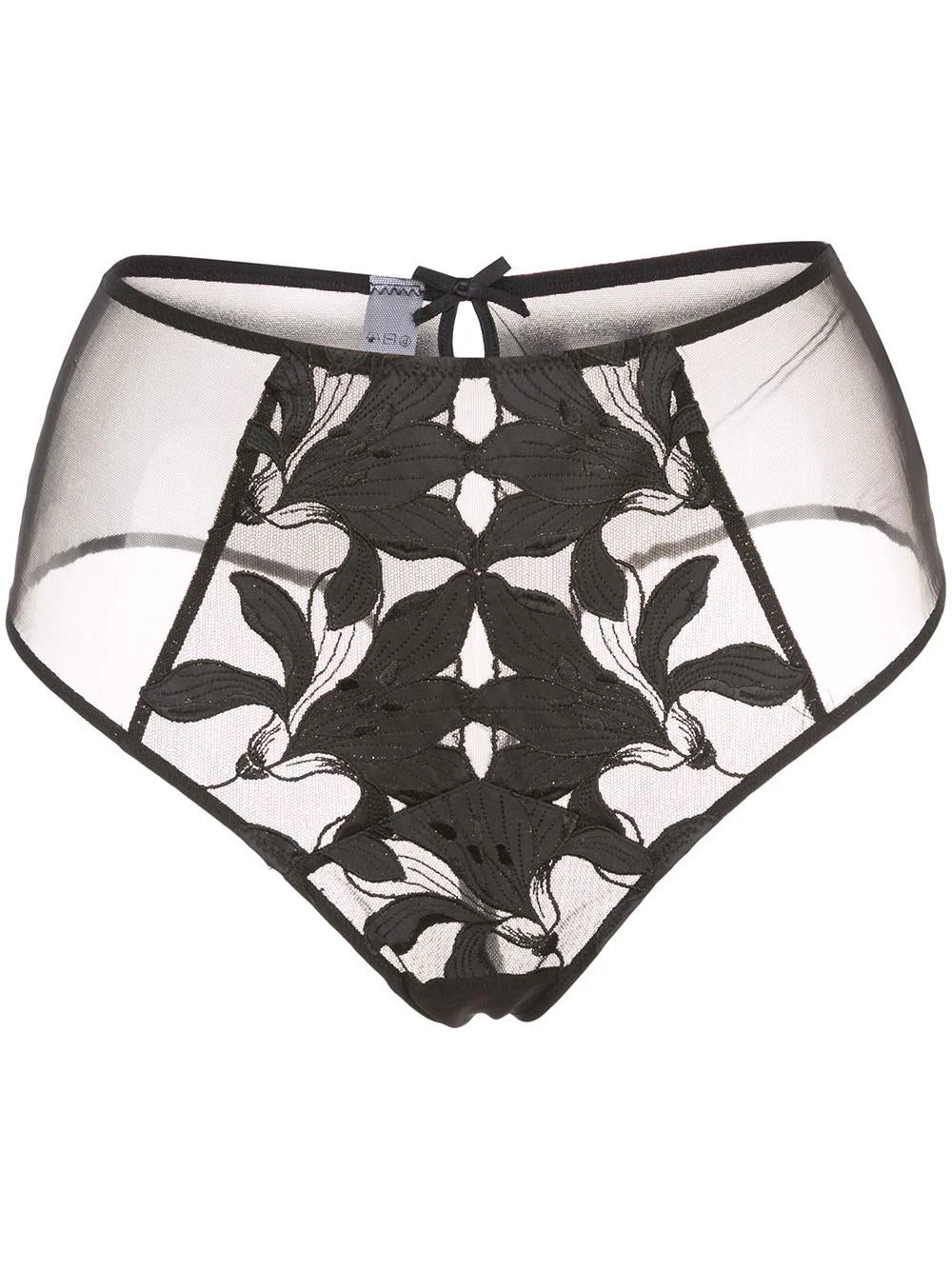 Black silk blend and cotton Lily high-waisted thong from Fleur du Mal featuring a high rise, a sheer construction, a fitted silhouette and a bow on the back. Underwear and lingerie must be tried on over your own garments.