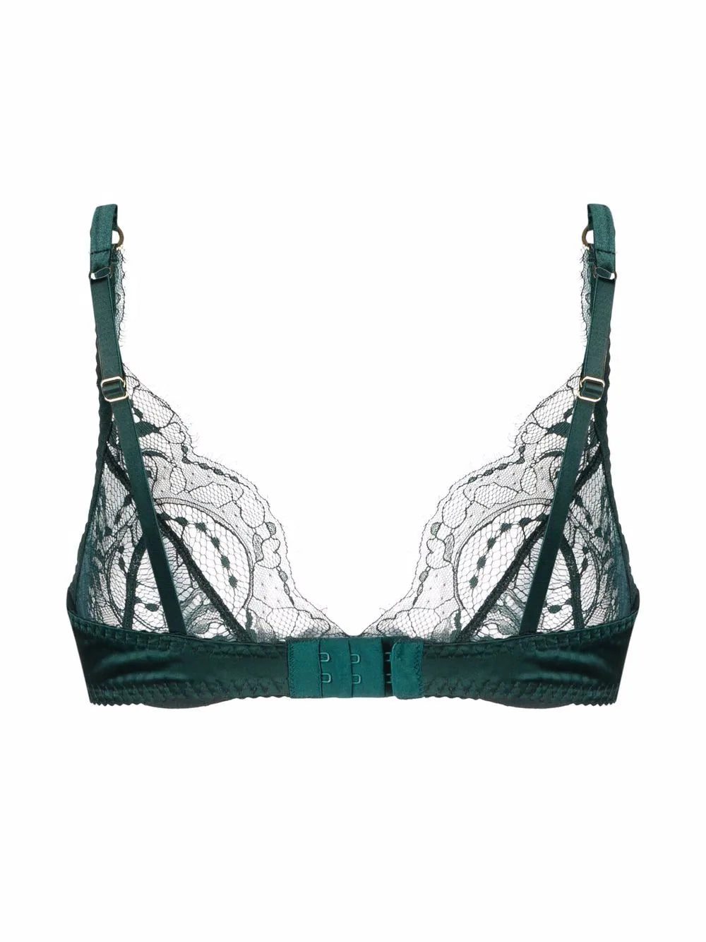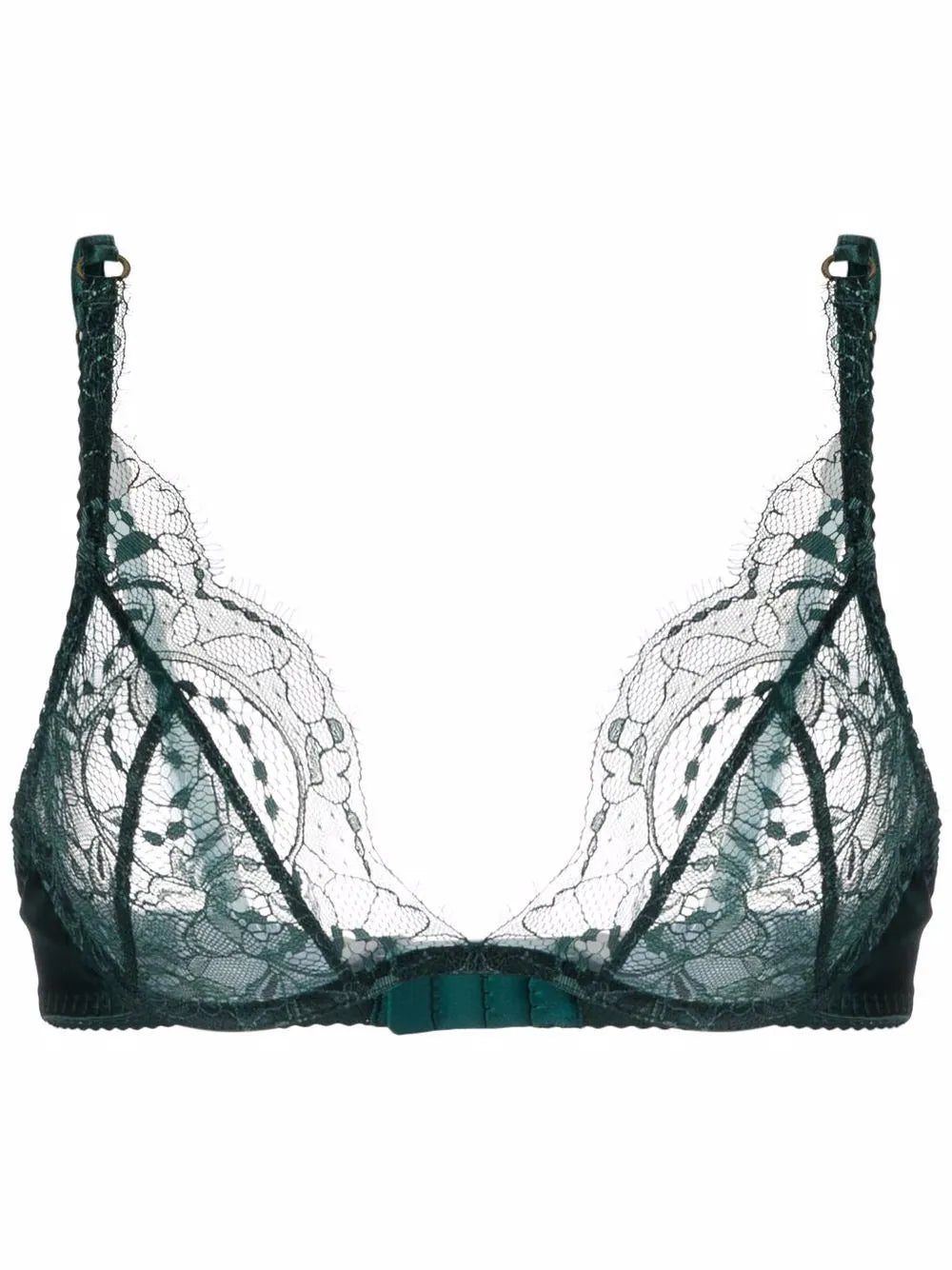 emerald green lace trim adjustable shoulder straps underwire cup rear clasp fastening