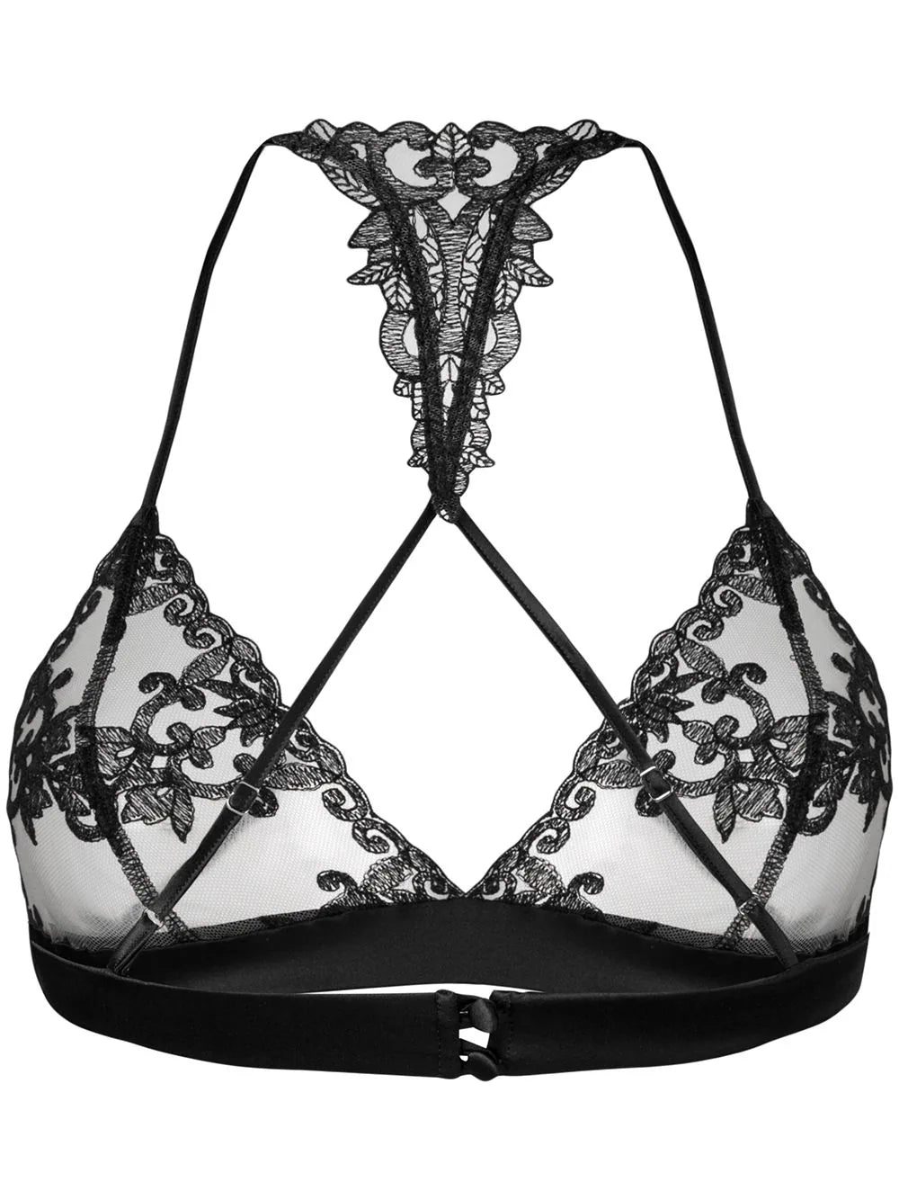 Black Onyx Boudoir bra from Fleur Of England featuring shoulder straps and a lace detail. Underwear and lingerie must be tried on over your own garments.