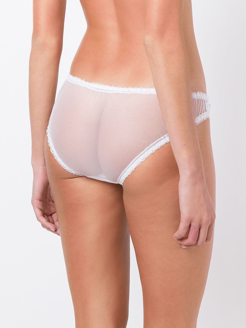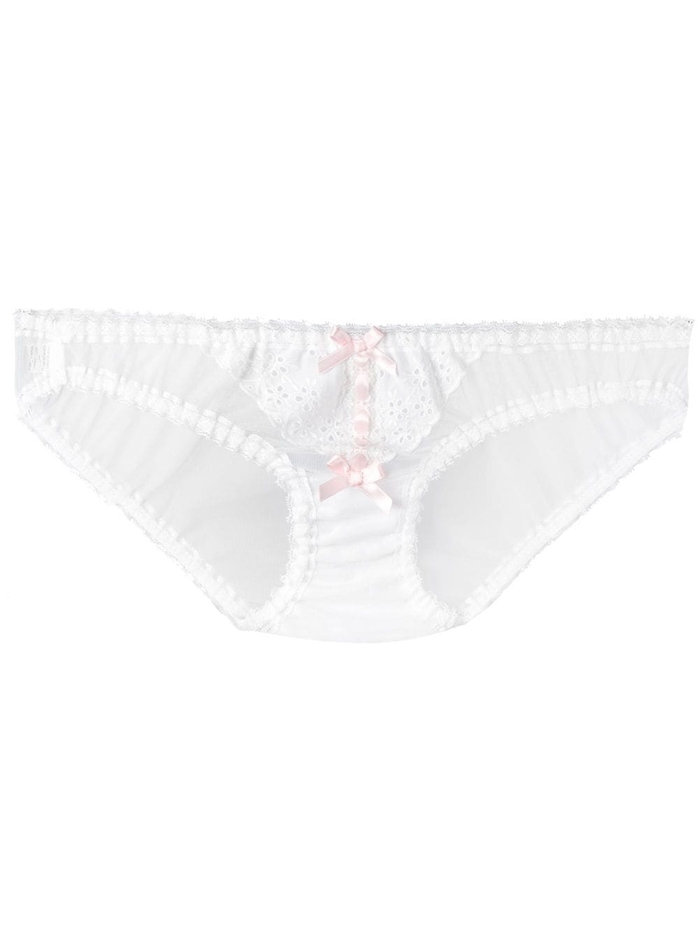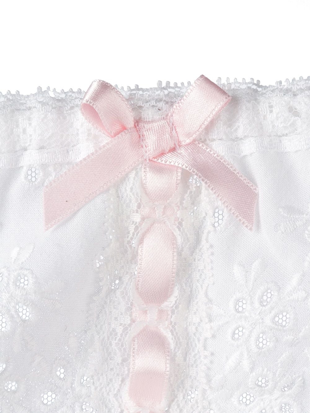 White and pink Antoinette sheer panelled briefs from Folies By Renaud featuring a bow detail and a floral pattern. Underwear and lingerie must be tried on over your own garments.